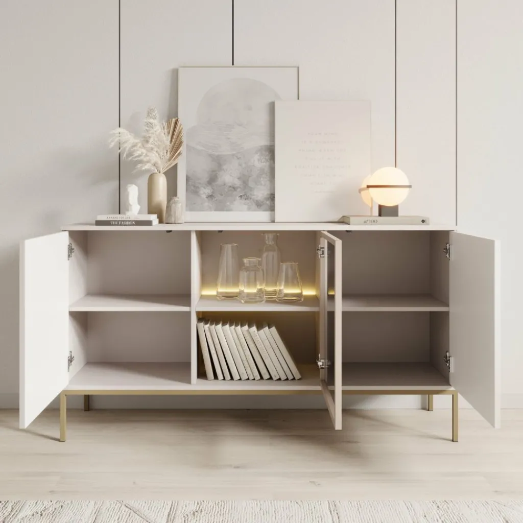 Dressoir Legend is een opbergkast in moderne, hotelchique stijl. Het dressoir is gemaakt van een stevige spaanplaat constructie met duurzaam FSC keurmerk.