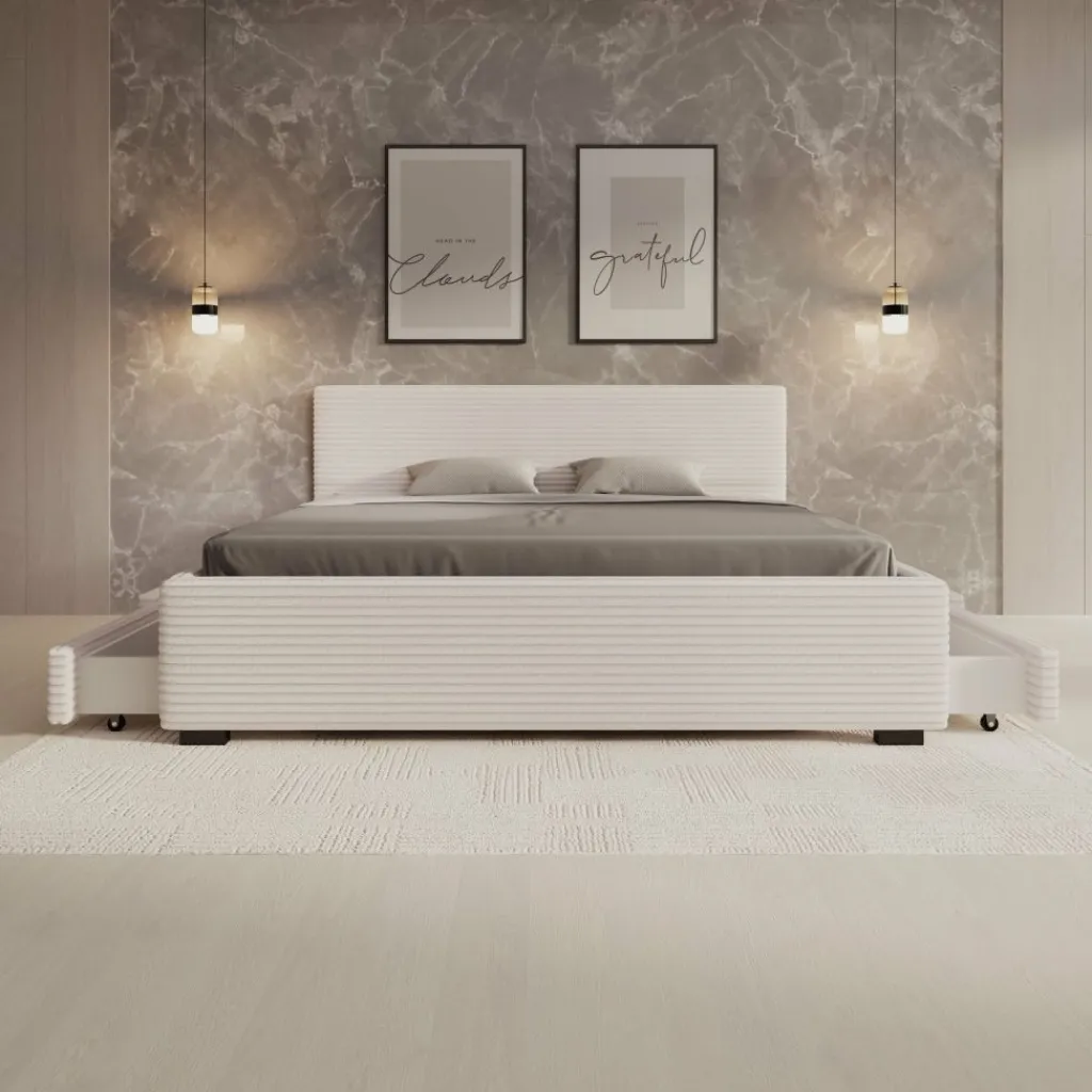 Net als bij de andere uitvoeringen kunnen optionele opberglades worden toegevoegd voor het opbergen van kleding of beddengoed, zodat de ruimte onder het bed praktisch benut wordt.