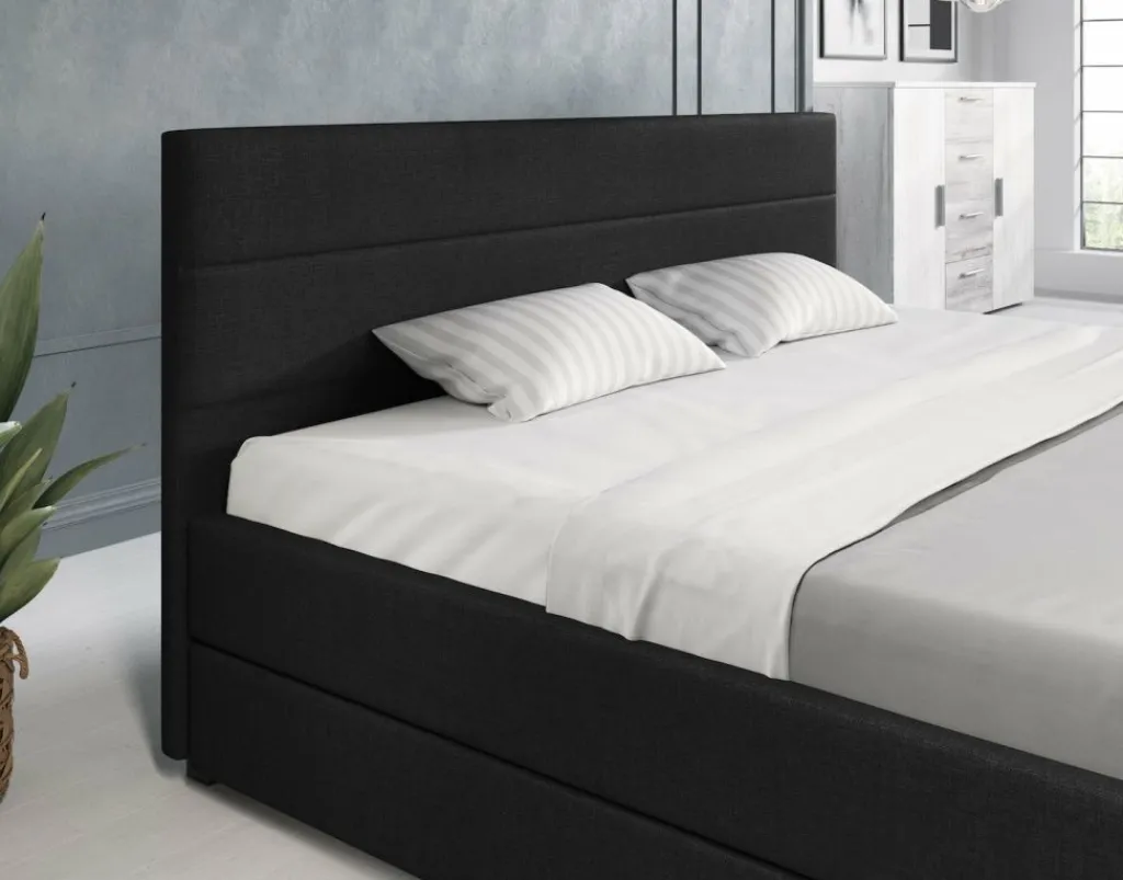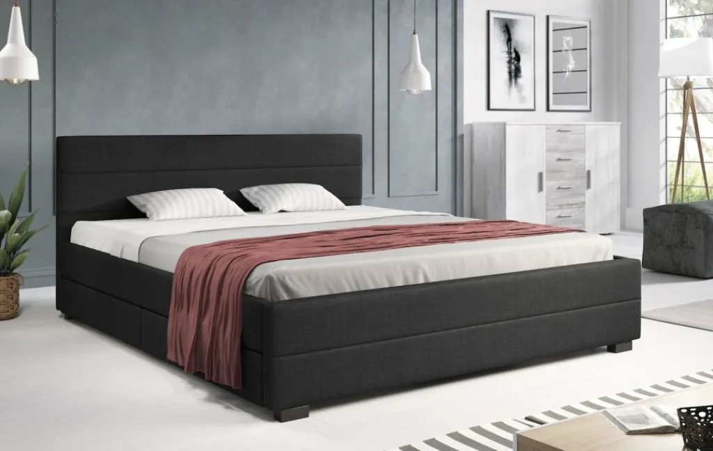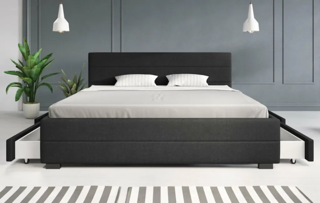 Tweepersoonsbed Loox is een praktisch, modern bed en een echte eyecatcher. Dit model is afgewerkt met onderhoudsvriendelijke stof in de kleur grijs. Het bed beschikt over een stevige constructie inclusief hoofdbord, voetbord en zijpanelen en staat op pootjes van 4,5 cm hoog. Bij de prijs is ook een standaard lattenbodem inbegrepen. Een matras wordt niet bijgeleverd. Het bed is ontzettend praktisch aangezien er in totaal vier lades met wieltjes in geplaatst zijn: twee aan iedere zijkant. Tweepersoonsbed Loox heeft een draagvermogen van 100 kg per ligzijde.