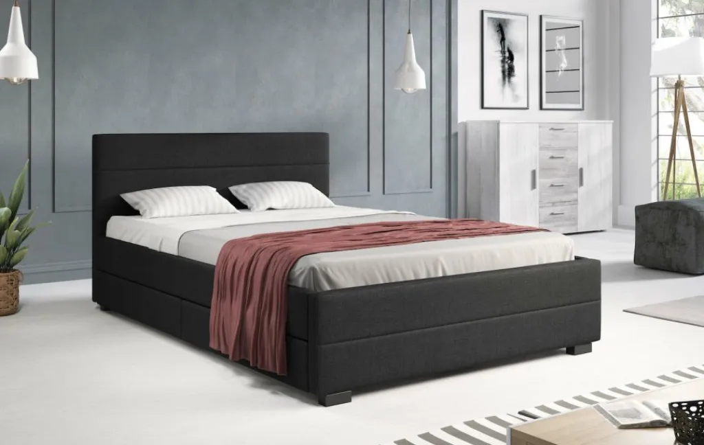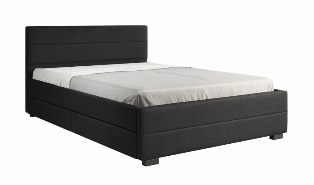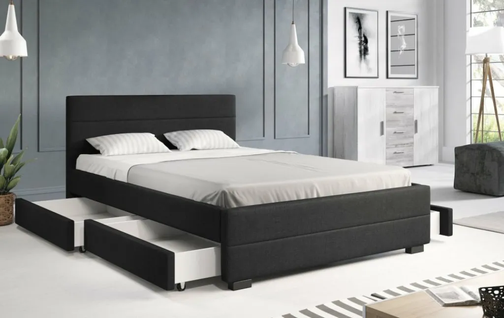 Tweepersoonsbed Loox is een praktisch, modern bed en een echte eyecatcher. Dit model is afgewerkt met onderhoudsvriendelijke stof in de kleur grijs. Het bed beschikt over een stevige constructie inclusief hoofdbord, voetbord en zijpanelen en staat op pootjes van 4,5 cm hoog. Bij de prijs is ook een standaard lattenbodem inbegrepen. Een matras wordt niet bijgeleverd. Het bed is ontzettend praktisch aangezien er in totaal vier lades met wieltjes in geplaatst zijn: twee aan iedere zijkant. Tweepersoonsbed Loox heeft een draagvermogen van 100 kg per ligzijde.