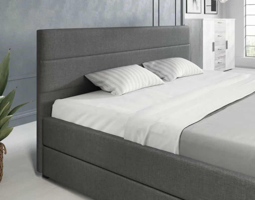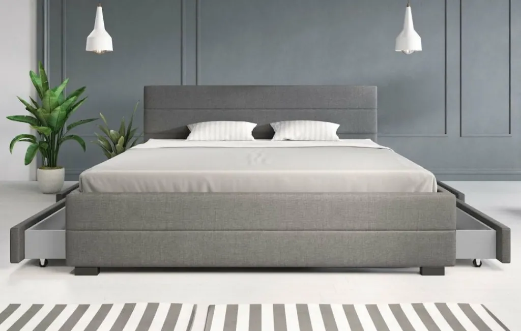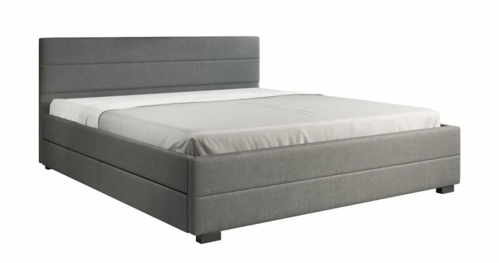 Tweepersoonsbed Loox is een praktisch, modern bed en een echte eyecatcher. Dit model is afgewerkt met onderhoudsvriendelijke stof in de kleur grijs. Het bed beschikt over een stevige constructie inclusief hoofdbord, voetbord en zijpanelen en staat op pootjes van 4,5 cm hoog. Bij de prijs is ook een standaard lattenbodem inbegrepen. Een matras wordt niet bijgeleverd. Het bed is ontzettend praktisch aangezien er in totaal vier lades met wieltjes in geplaatst zijn: twee aan iedere zijkant. Tweepersoonsbed Loox heeft een draagvermogen van 100 kg per ligzijde.