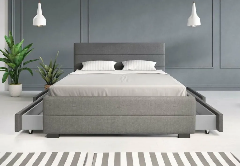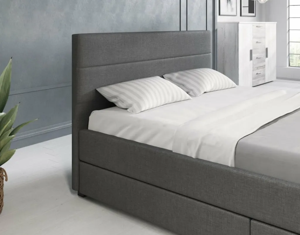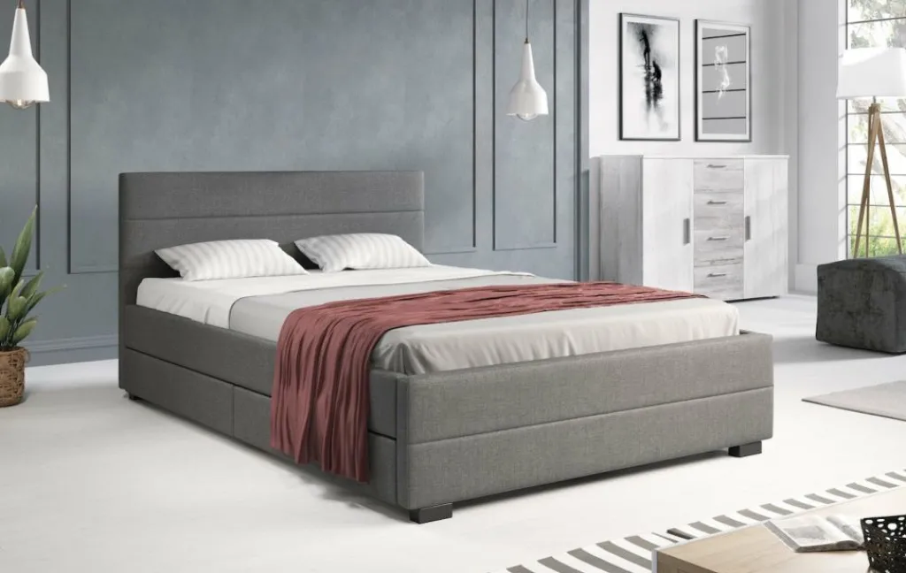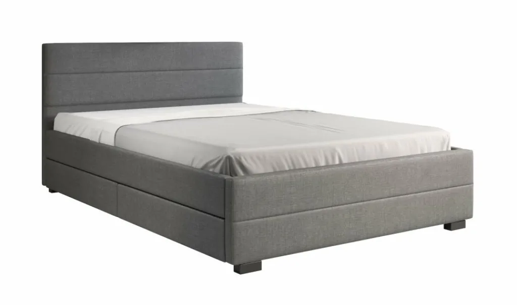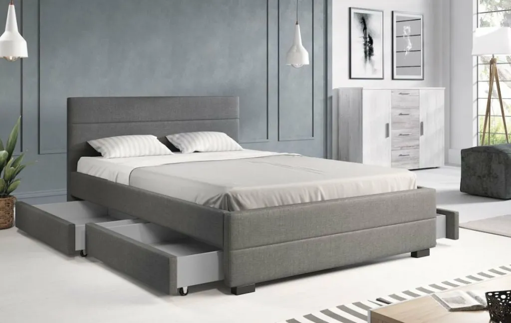 Tweepersoonsbed Loox is een praktisch, modern bed en een echte eyecatcher. Dit model is afgewerkt met onderhoudsvriendelijke stof in de kleur grijs. Het bed beschikt over een stevige constructie inclusief hoofdbord, voetbord en zijpanelen en staat op pootjes van 4,5 cm hoog. Bij de prijs is ook een standaard lattenbodem inbegrepen. Een matras wordt niet bijgeleverd. Het bed is ontzettend praktisch aangezien er in totaal vier lades met wieltjes in geplaatst zijn: twee aan iedere zijkant. Tweepersoonsbed Loox heeft een draagvermogen van 100 kg per ligzijde.