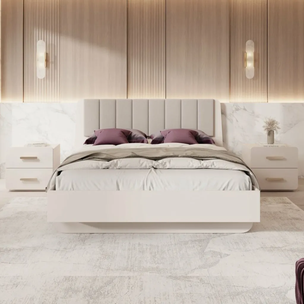 Het Luzon tweepersoonsbed in beige heeft een strak ontwerp met een gestoffeerd hoofdbord dat extra steun biedt wanneer je rechtop in bed zit. Het bed heeft een ligoppervlak van 160×200 cm en biedt voldoende ruimte voor twee personen.