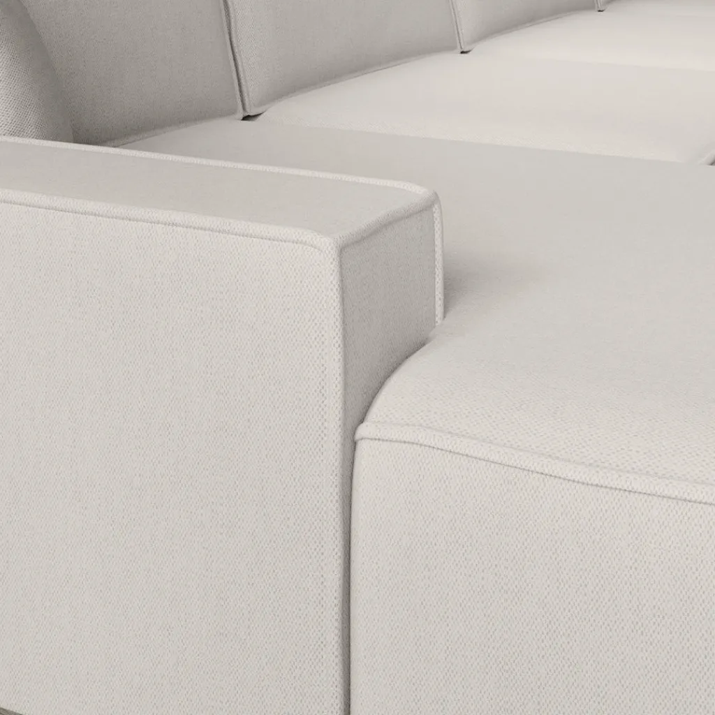 Hoekbank Manolo is een strakke, moderne hoekbank met een naar buiten gestikte siernaad op de randen. De Manolo is een U-vormige hoekbank en geschikt voor 6 tot 7 personen. Deze hoekbank beschikt over vaste zitkussens en grote, losse rugkussens. De bank bestaat uit een lounge-gedeelte, 2-zitsbank, hoekelement en 1,5 zitter. De bank staat op lage, kunststof pootjes.