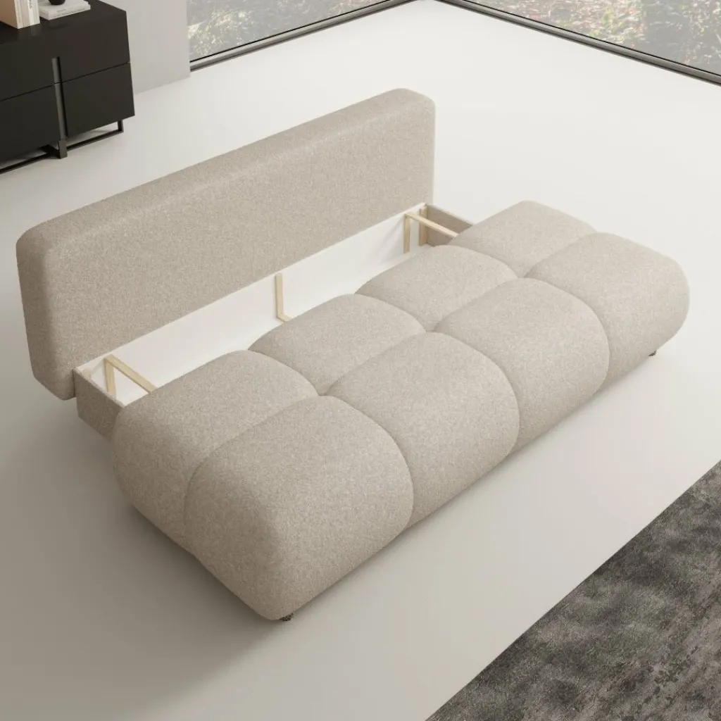 De Marela slaapbank is een praktische oplossing voor wie zit- en slaapruimte wil combineren in één meubel. Met een breedte van 214 cm biedt deze slaapbank voldoende plaats om comfortabel te zitten en kan hij eenvoudig worden uitgeklapt tot een slaapoppervlak voor logees of dagelijks gebruik.