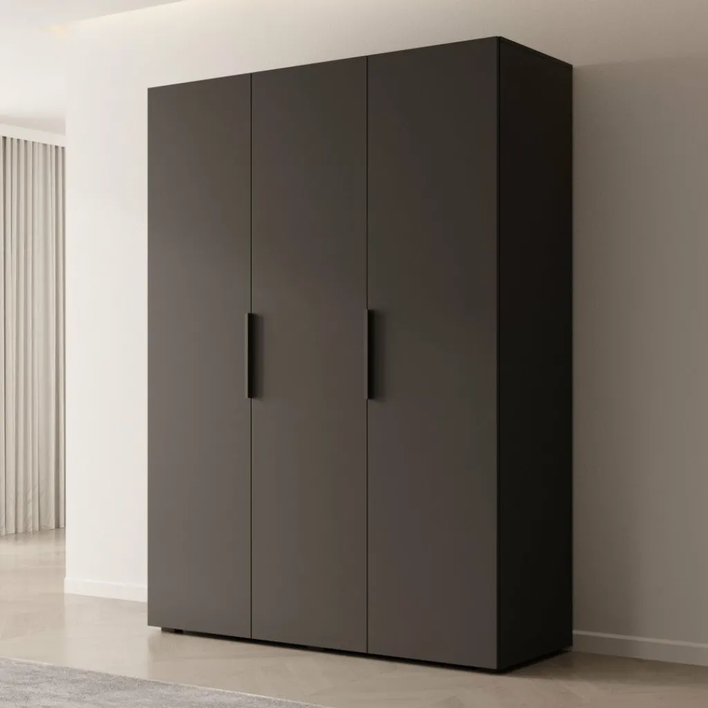 De kledingkast Marquesa combineert een diepzwarte look met een strak, modern ontwerp. Met drie draaideuren en geïntegreerde zwarte handgrepen past deze kast moeiteloos in verschillende interieurs.