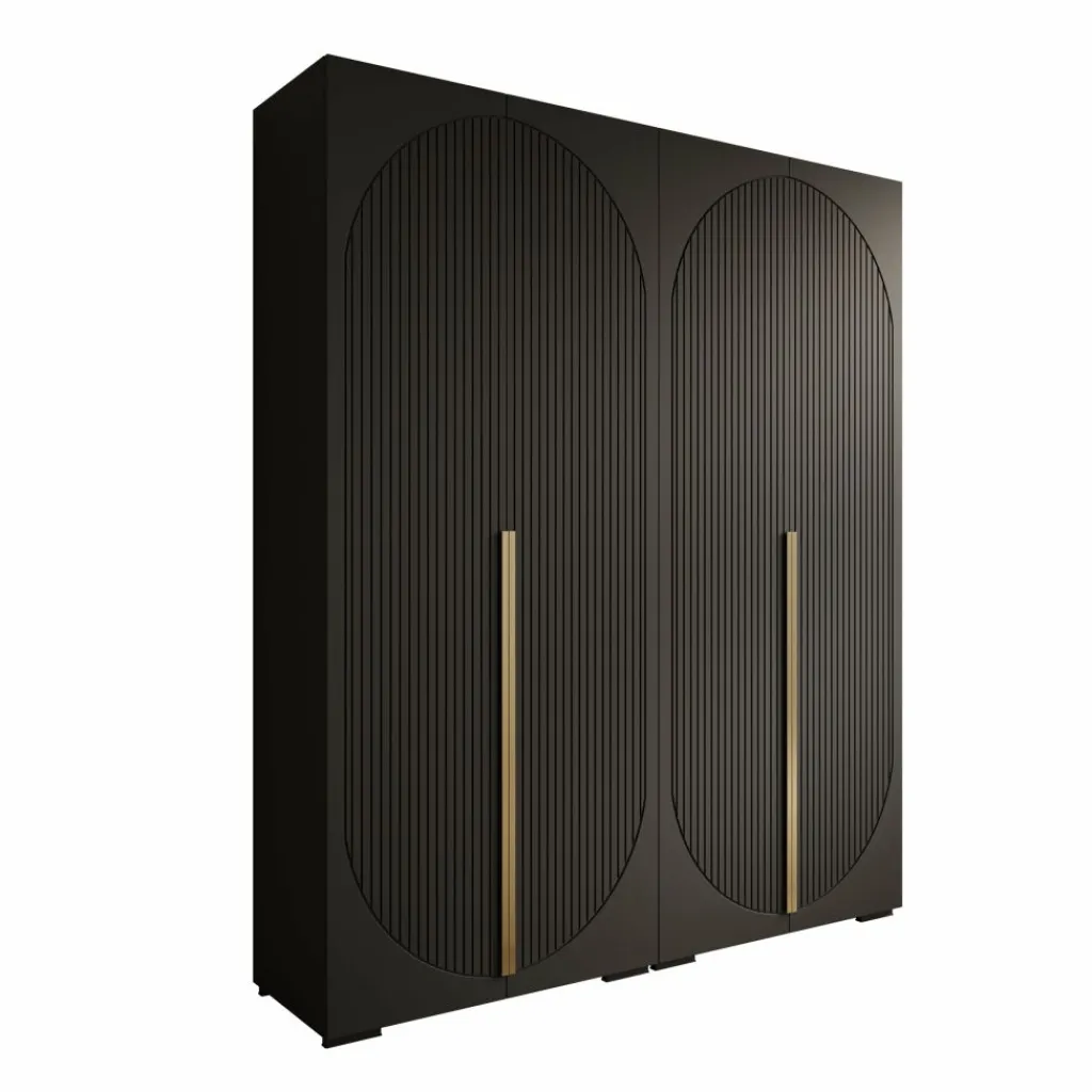 De zwarte afwerking en strakke belijning zorgen voor een modern en krachtig geheel. De verticale details in de deuren geven structuur aan het ontwerp, waardoor de Mayfair kledingkast goed past binnen moderne en minimalistische interieurs.