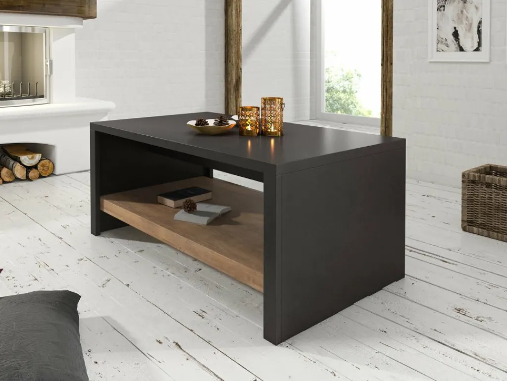 Salontafel Monaco is een salontafel met een industriële uitstraling. De tafel staat op twee brede poten en heeft een grijs blad. De Monaco heeft een lengte van 120 cm.