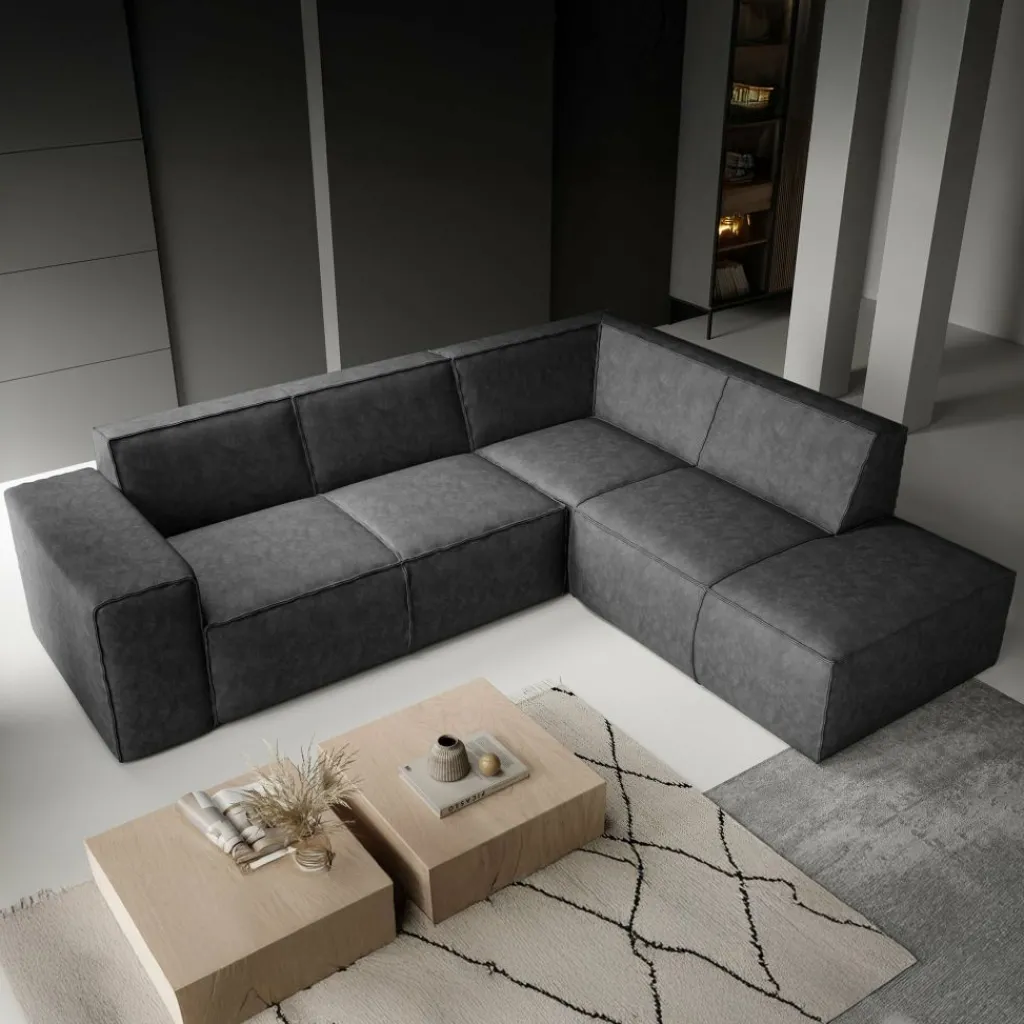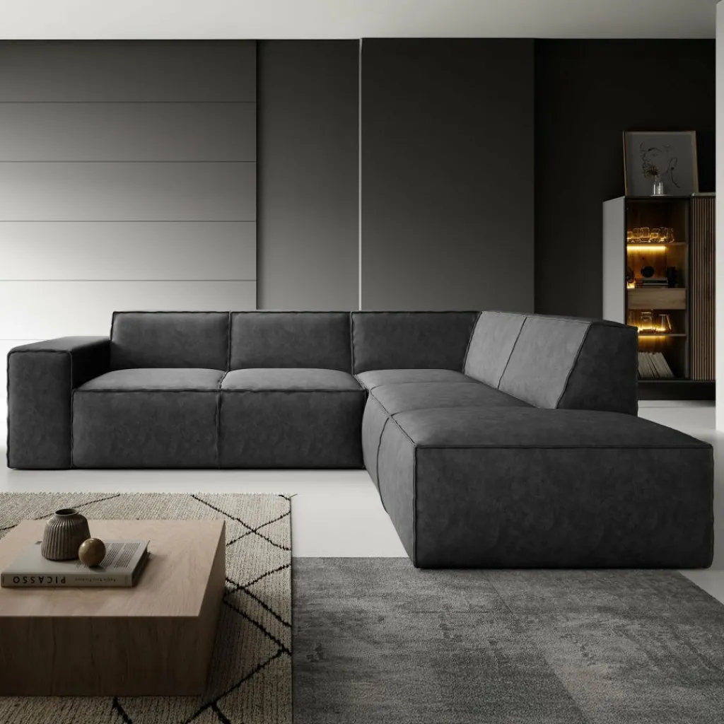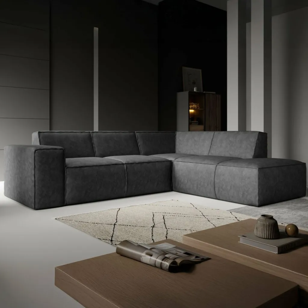 Hoekbank Monet is een royale L-vormige hoekbank met chaise longue. De ruime opstelling biedt plaats aan 4 tot 5 personen.