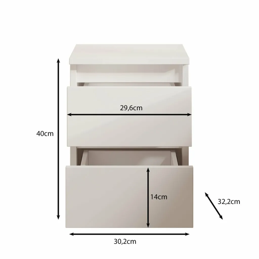 Het kastje is uitgerust met twee lades die genoeg ruimte bieden voor bijvoorbeeld je bril, oplader of andere persoonlijke items. De greeploze houten fronten geven het geheel een rustige, strakke look en zorgen dat het nachtkastje eenvoudig te combineren is met verschillende interieurstijlen zoals modern, industrieel of Scandinavisch. Het blad bovenop biedt ruimte voor een lamp, wekker of decoratie, zodat je jouw slaapkamer netjes en georganiseerd houdt.