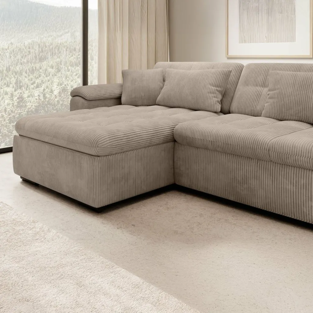 Met hoekbank Nicoreta haal je een royale en moderne zitplek in huis. De stevige stoffering in ribstof zorgt voor een luxe uitstraling en voelt zacht aan. De ruime U-vormige opstelling biedt plaats voor 5 tot 6 personen.