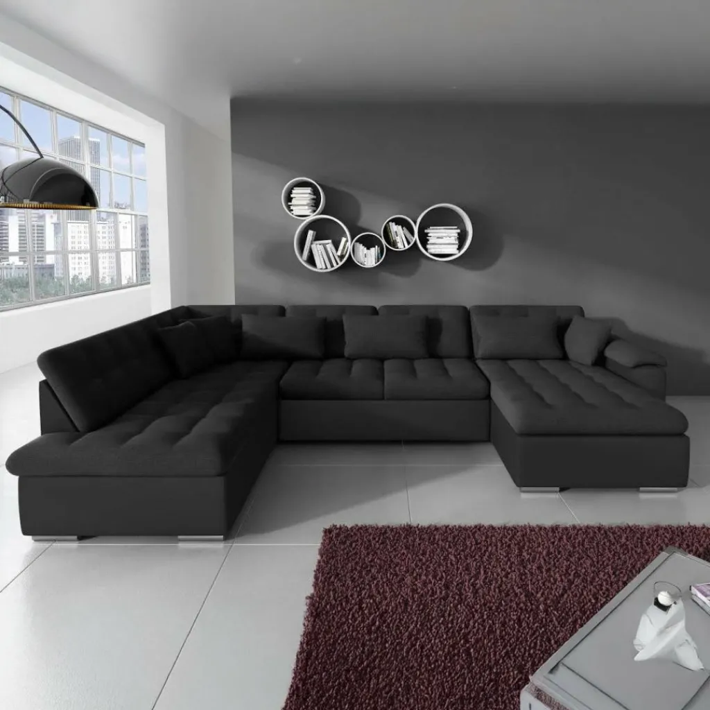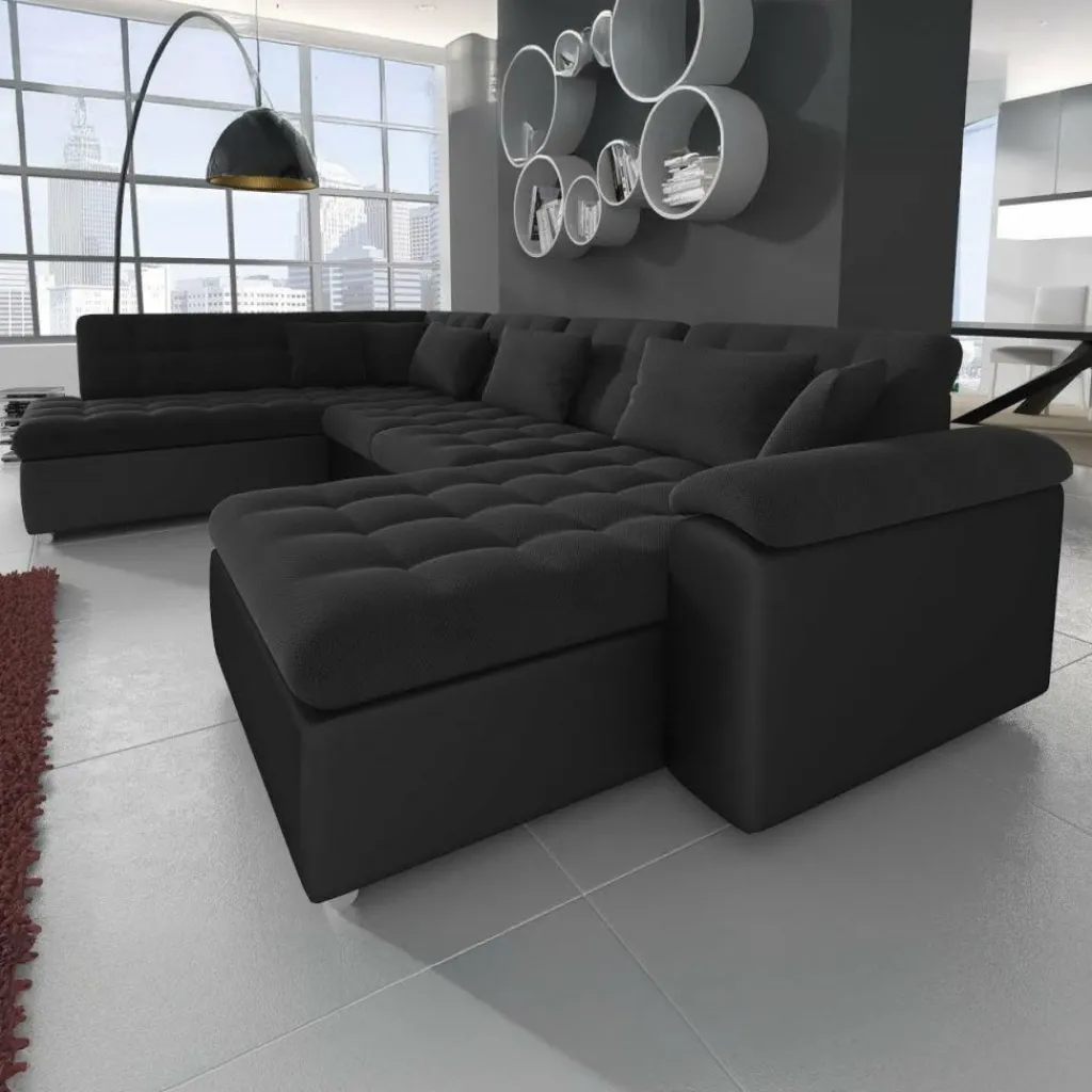 Met hoekbank Nicoreta haal je een royale en moderne zitplek in huis. De zachte zwarte stof voelt aangenaam aan en zorgt voor een warme sfeer in de woonkamer, terwijl de vaste kussens met doorgestikte zitting zorgen voor een strak en verzorgd geheel. De ruime U-vormige opstelling biedt plaats voor 5 tot 6 personen.