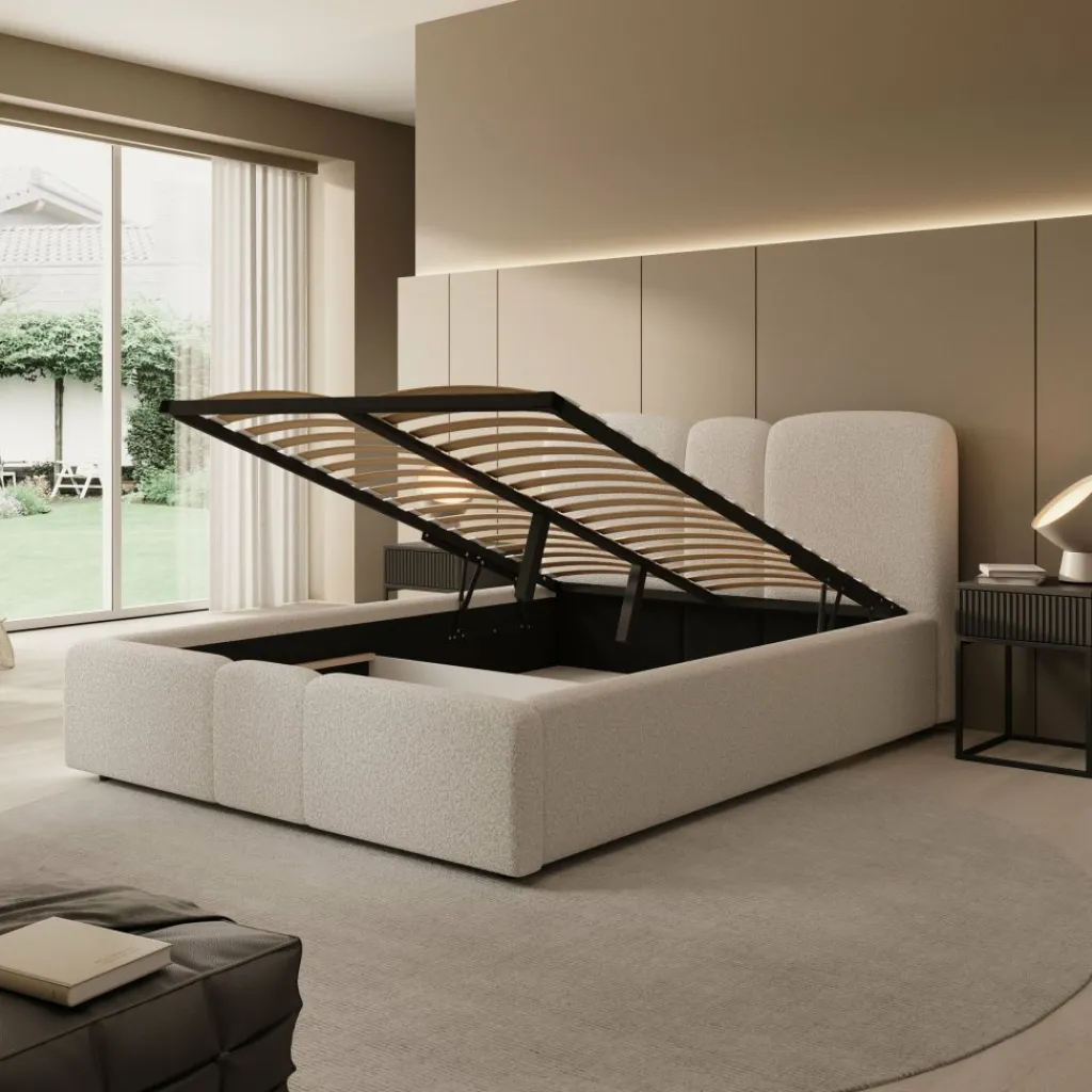 Onder de lattenbodem bevindt zich een ruime opbergbox die eenvoudig bereikbaar is dankzij het liftsysteem. De lattenbodem kan omhoog worden geklapt, waardoor er extra ruimte ontstaat voor het opbergen van bijvoorbeeld beddengoed, kussens of dekens. Het bed wordt geleverd inclusief lattenbodem en is geschikt voor een matras van 140×200 cm. Het matras wordt niet meegeleverd.