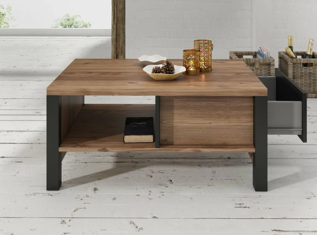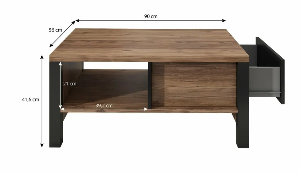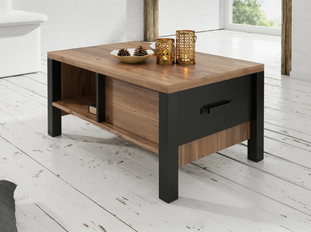 Salontafel Olivia is een praktisch vormgegeven tafel met handige opbergmogelijkheden. De Olivia beschikt over een open schap en een lade.