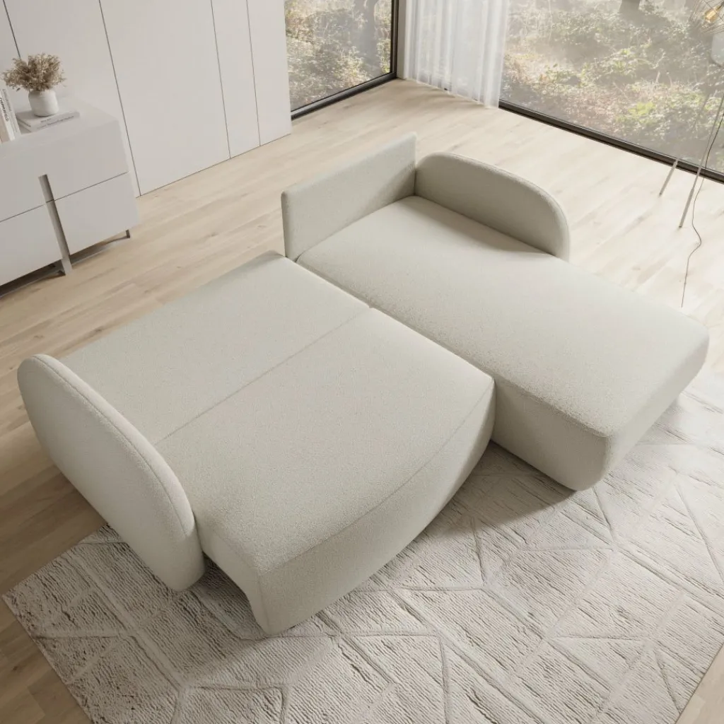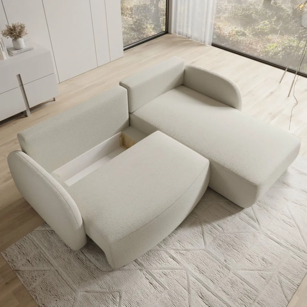 De bank kan worden uitgeklapt tot een groter liggedeelte. Onder het uitklapbare deel bevindt zich een opbergruimte die geschikt is voor het opbergen van bijvoorbeeld kussens of dekens.