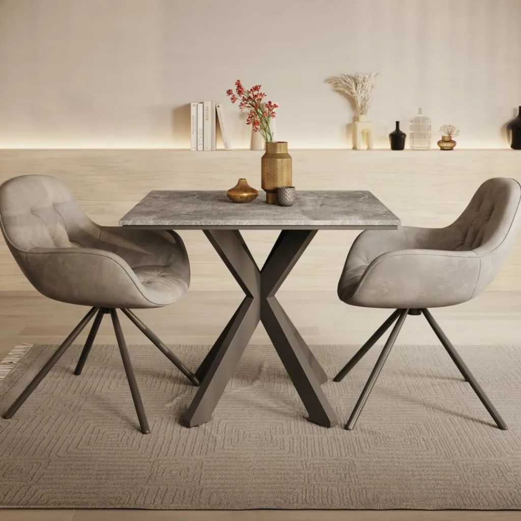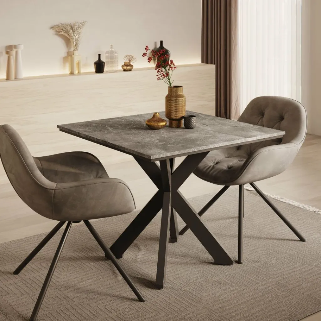Eetkamertafel Pacey is een compacte en moderne tafel die perfect past in diverse interieurs. Met een formaat van 90x90x74 cm biedt de tafel ruimte voor 2 tot 4 personen, ideaal voor kleinere eetkamers of keukens. Het tafelblad is volledig uitgevoerd in zwart, wat zorgt voor een strakke en tijdloze uitstraling.