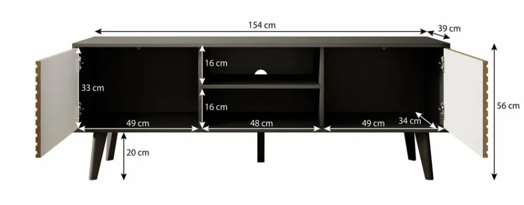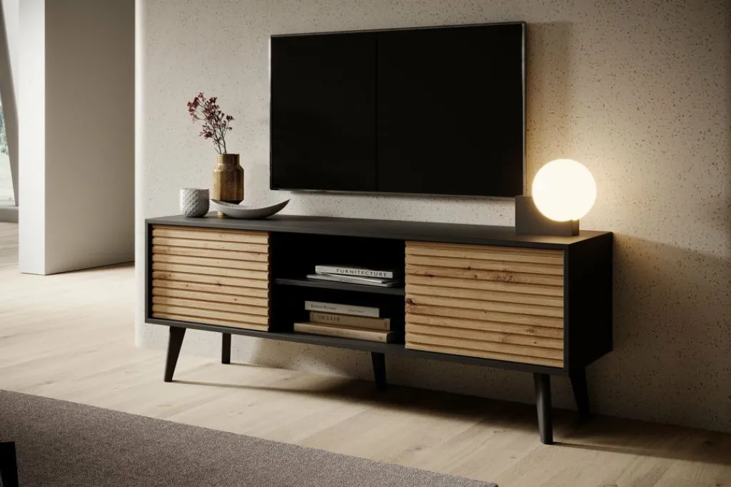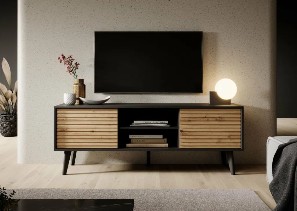 Om ervoor te zorgen dat je geen last hebt van losse kabels, is er een uitsparing in de achterwand van het open opbergvak. Zo kun je de bekabeling netjes wegwerken en blijft je woonkamer opgeruimd en overzichtelijk.