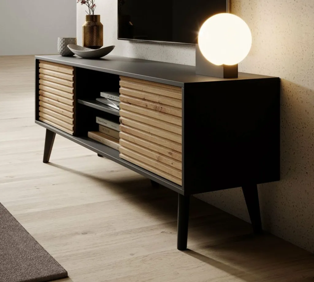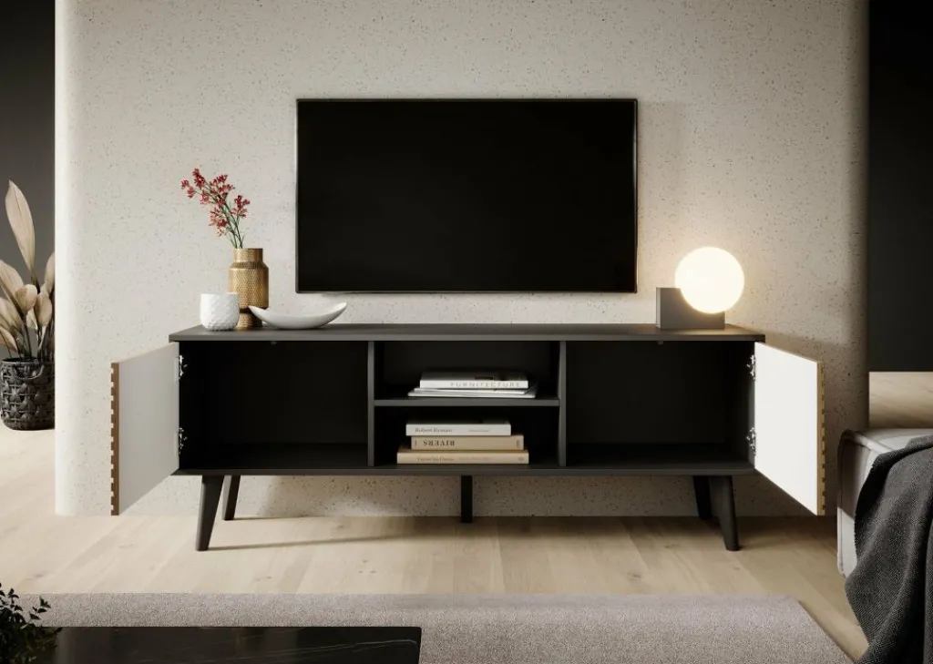 De Palladium beschikt over twee deuren, achter welke zich handige opbergvakken bevinden. Hier kun je gemakkelijk al je spullen opbergen die je liever uit het zicht hebt, zoals spelletjes of afstandsbedieningen. Daarnaast is er een open opbergvak met een legplank, handig voor het uitstallen van je favoriete accessoires of het plaatsen van apparatuur zoals een spelcomputer of receiver.