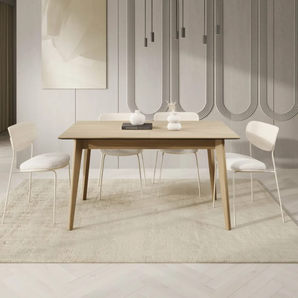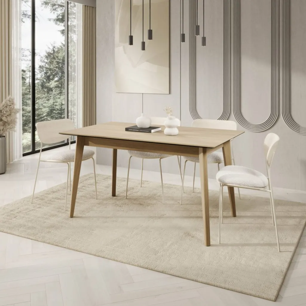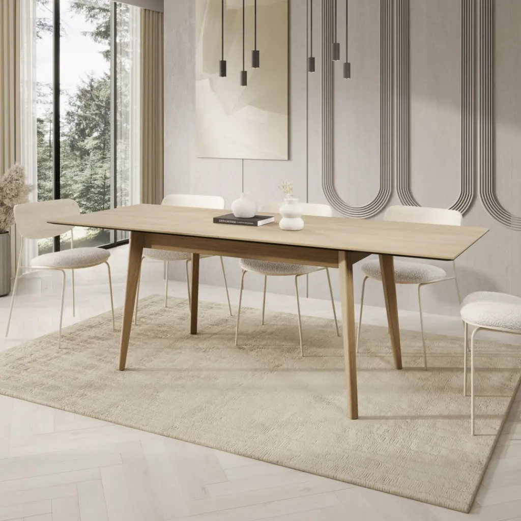 De licht eikenlook afwerking geeft de Portino een frisse en neutrale uitstraling die goed past in moderne en eigentijdse eetkamers. Dankzij de heldere vormgeving en praktische indeling is deze tafel flexibel inzetbaar in verschillende woonruimtes.