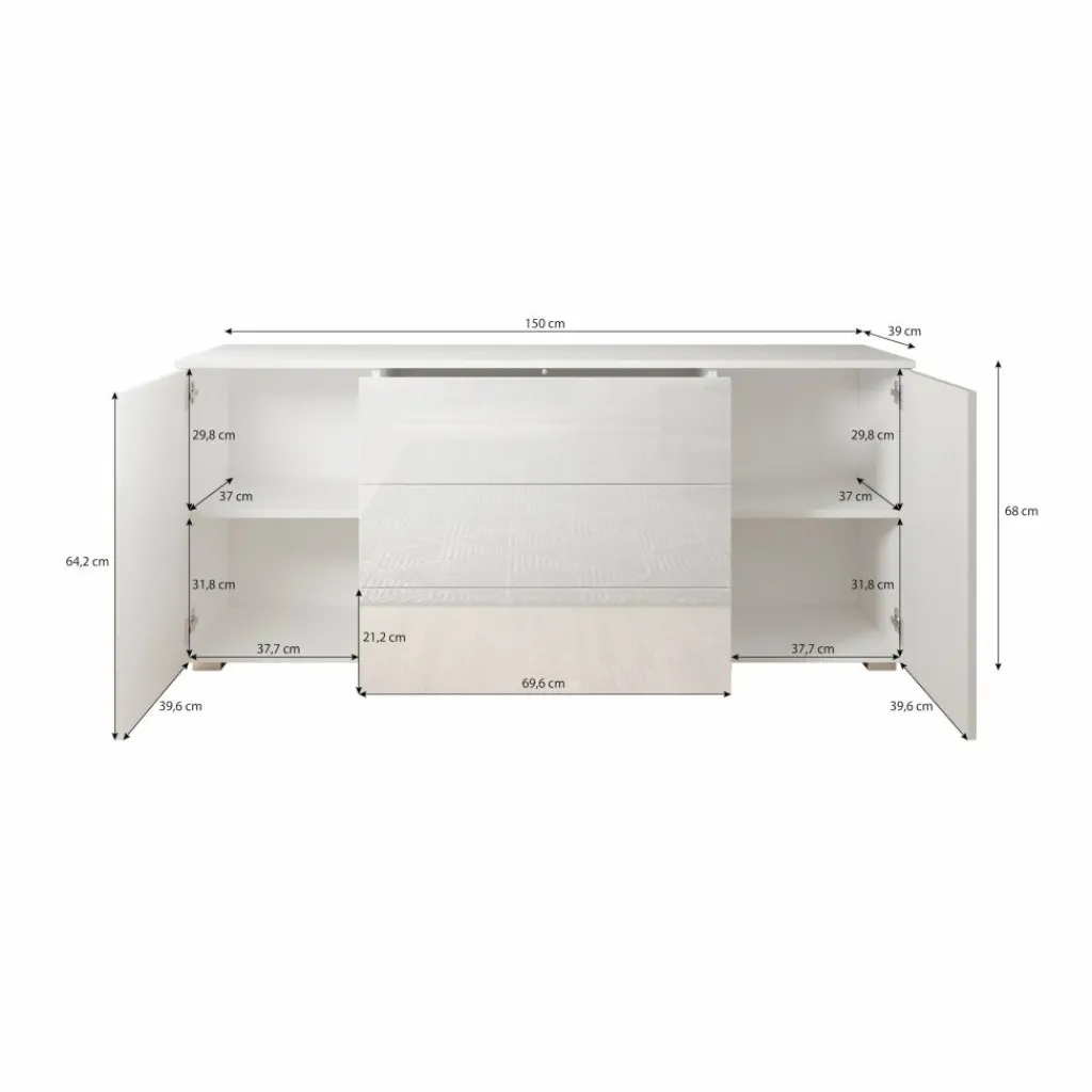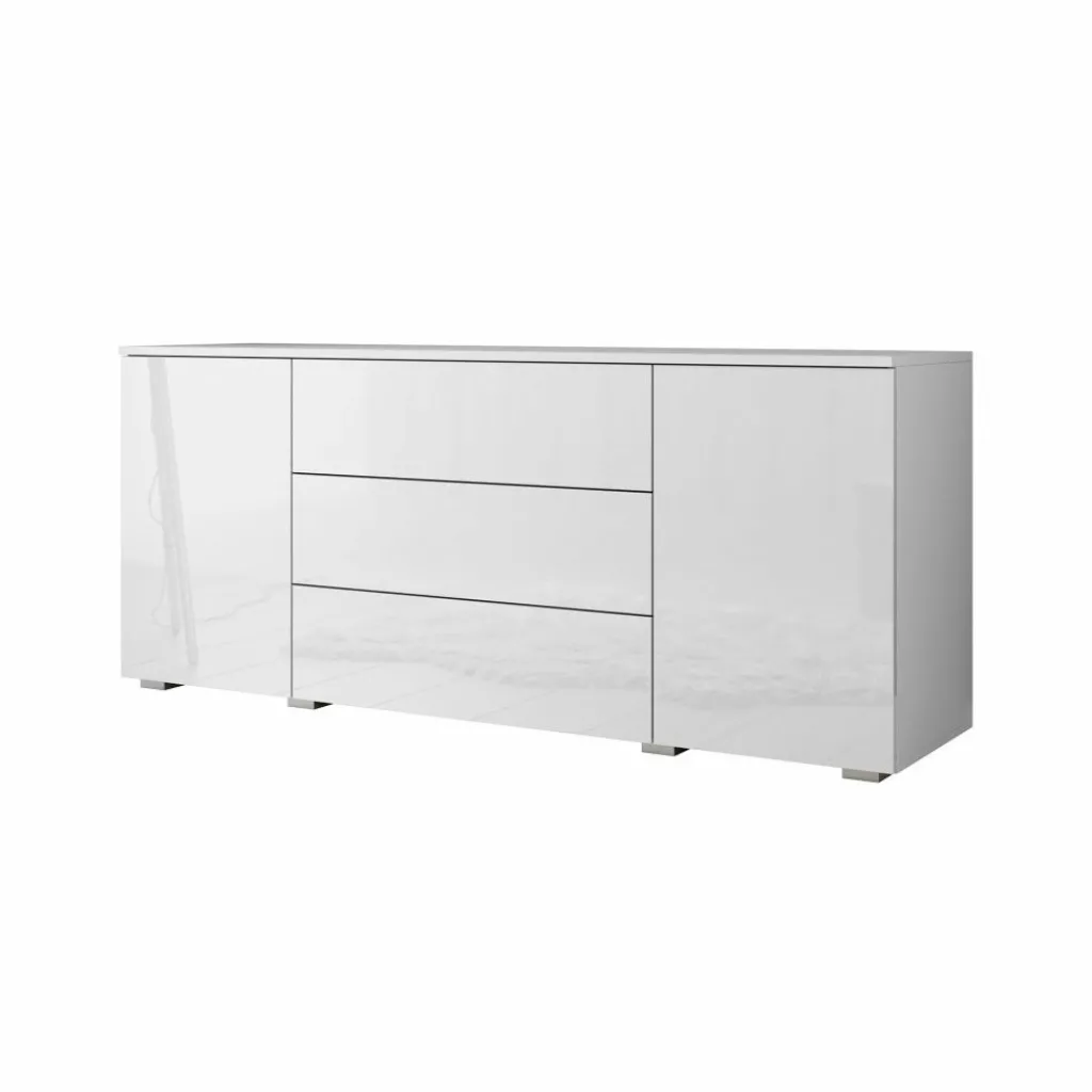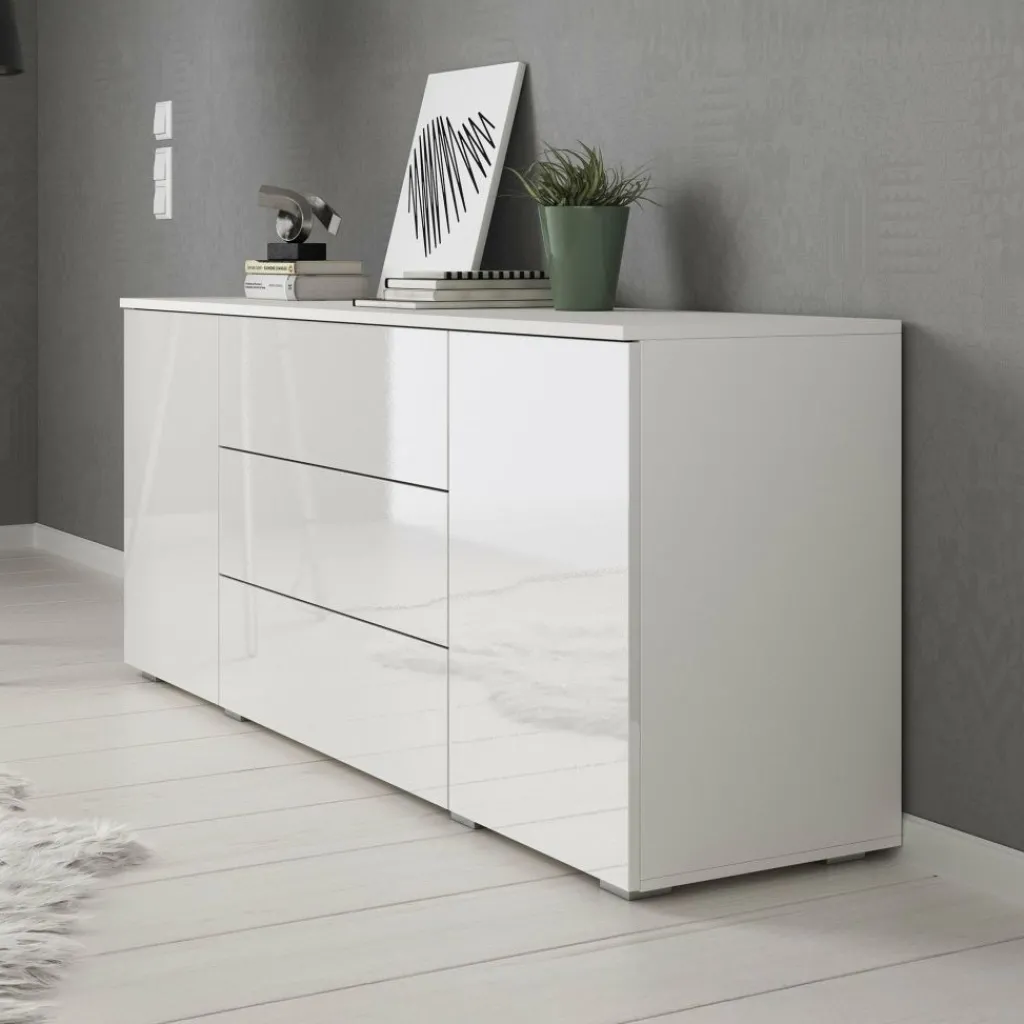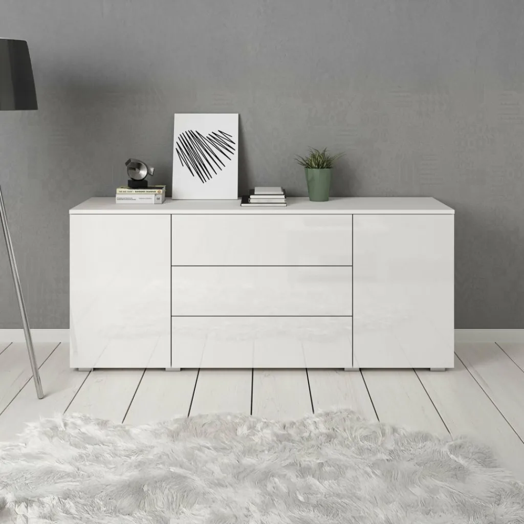 Dressoir Pure is een praktisch en moderne designkast, uitgevoerd in een witte kleur. De voorzijde is geheel uitgevoerd in hoogglans wit. De ombouw in mat wit. De kast beschikt over 2 openslaande deuren en 3 brede opberglades. Door het strakke en eenvoudige design is dit meubel vooral passend binnen een moderne woonstijl.