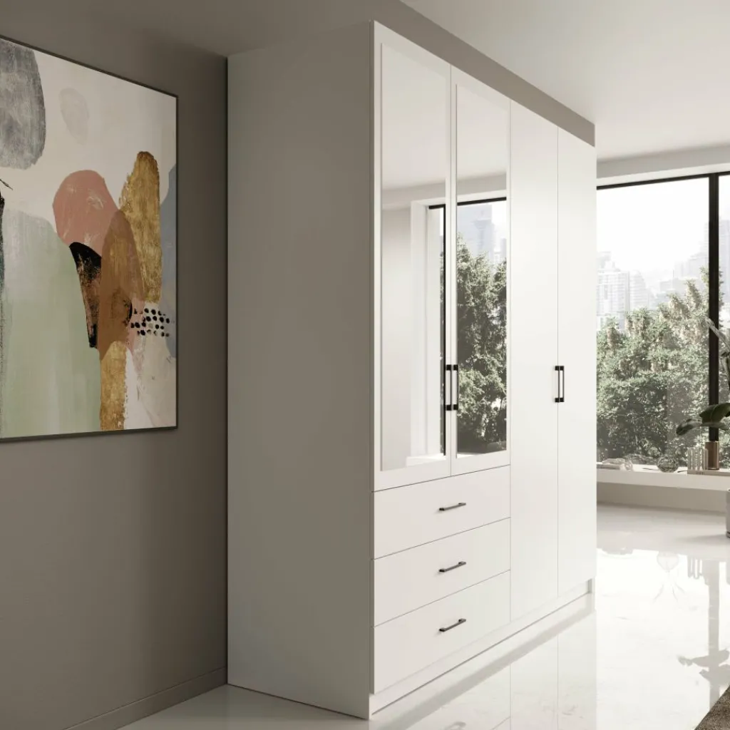Puro is een praktische keuze voor wie op zoek is naar een ruime kledingkast met een heldere indeling en een neutrale uitstraling die eenvoudig te combineren is in verschillende slaapkamers.