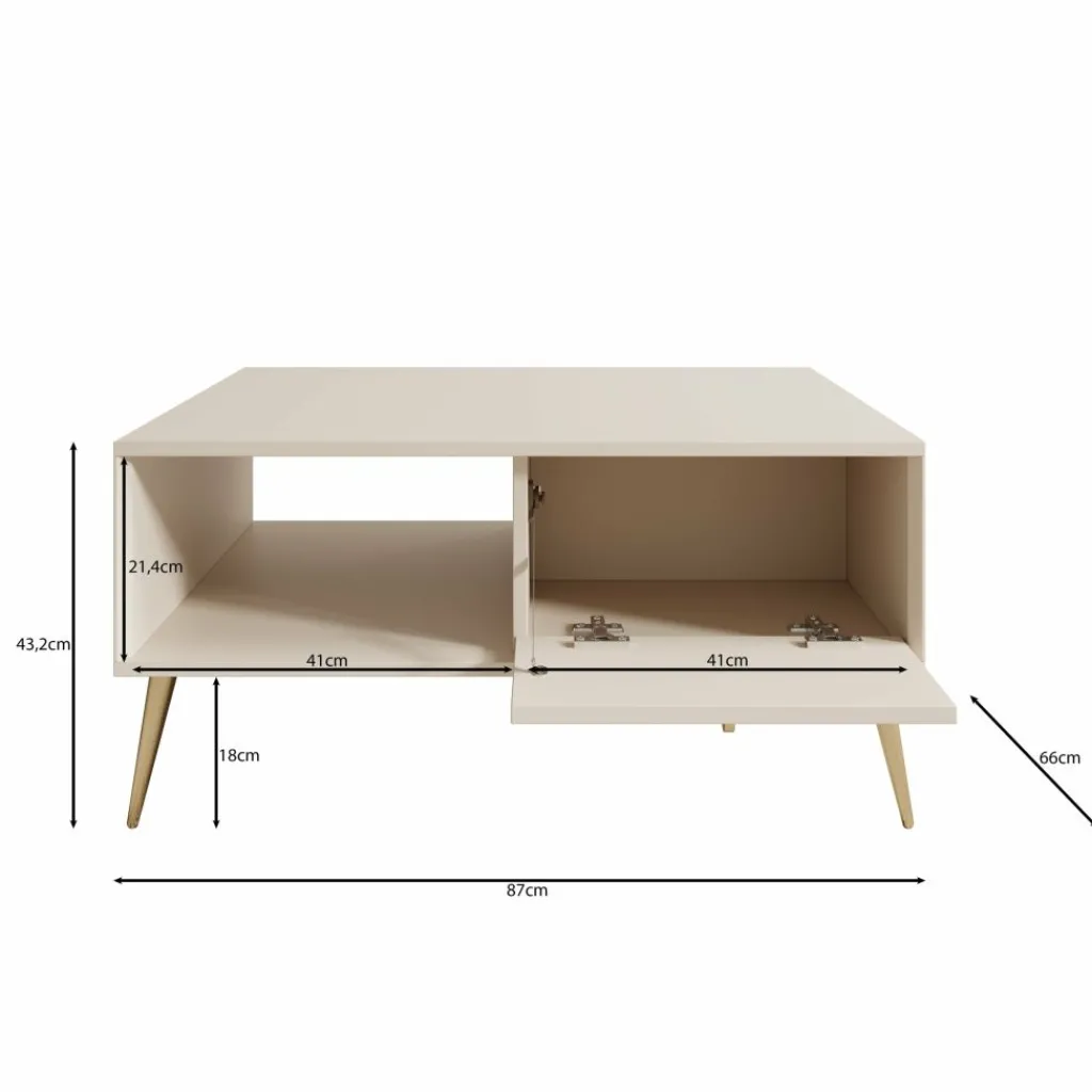 De tafel is praktisch ingedeeld met een open vak en een lade, ideaal om tijdschriften, afstandsbedieningen of andere spullen netjes op te bergen. Dankzij het compacte formaat van 87x66x43 cm past deze salontafel moeiteloos in zowel kleinere als ruimere woonkamers.