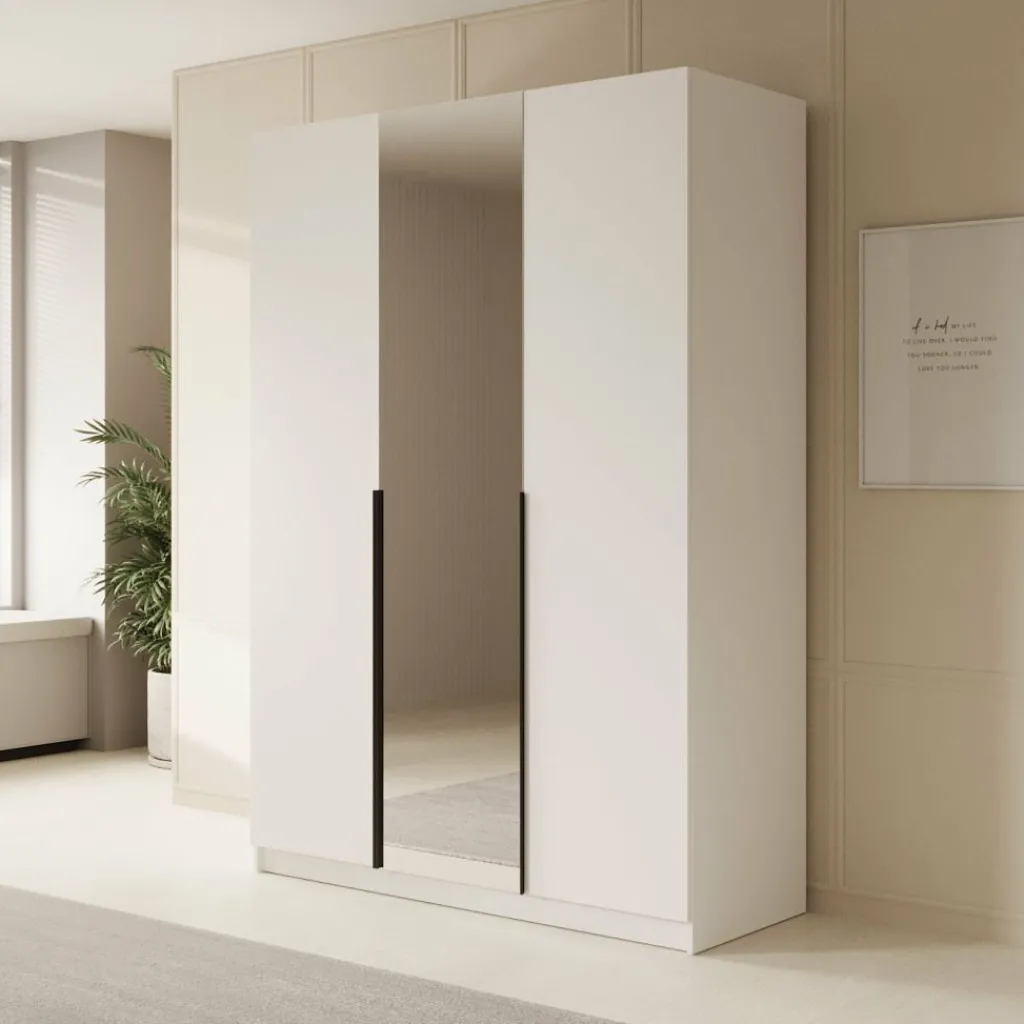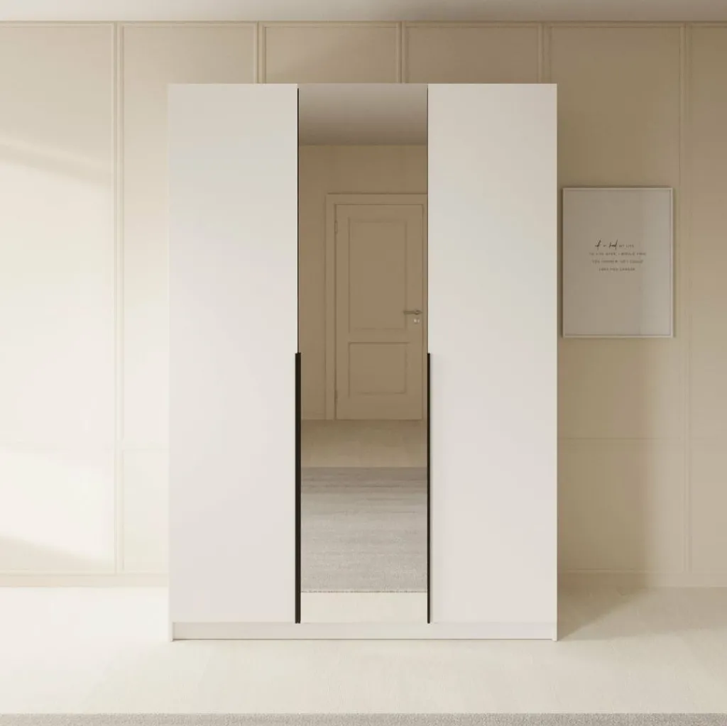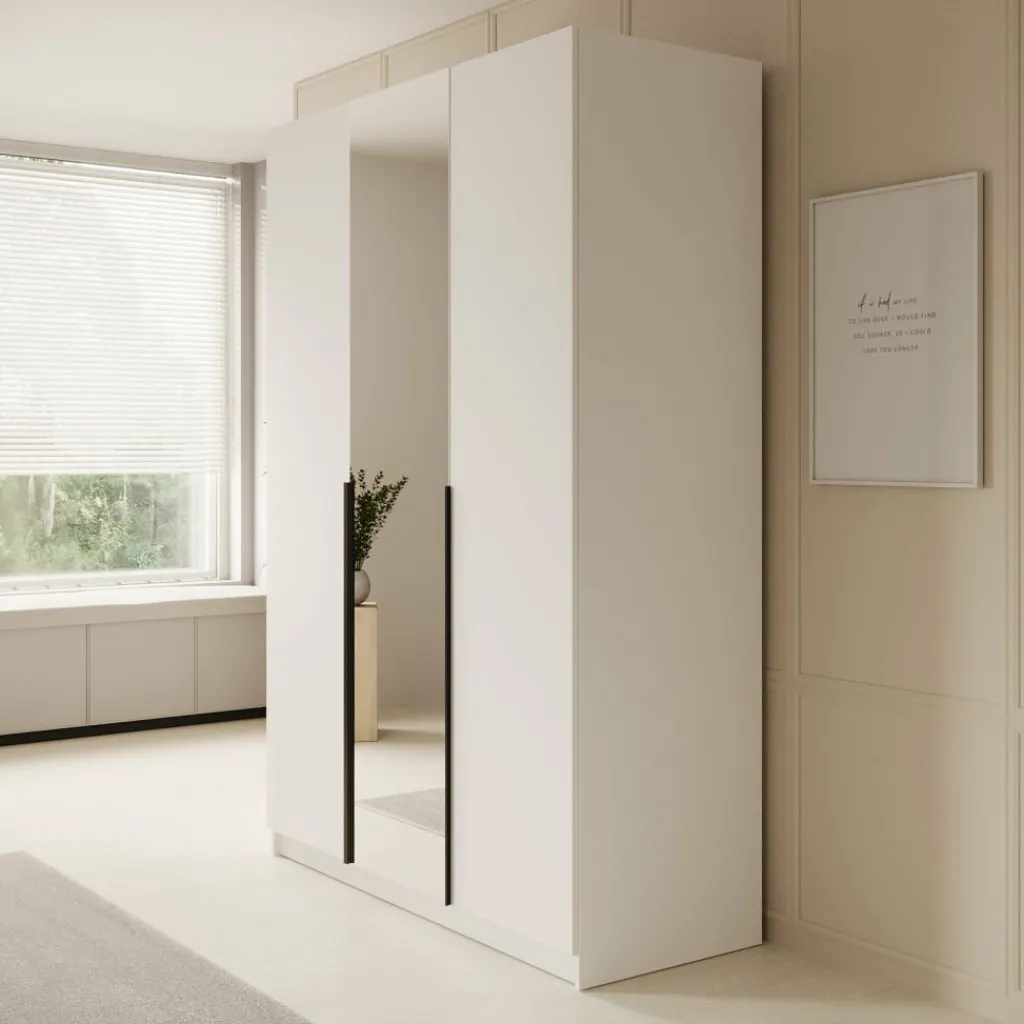 De minimalistische vormgeving en de lange, zwarte handgrepen geven deze kast een moderne uitstraling die perfect past in uiteenlopende interieurstijlen. De Sabre kledingkast met spiegel is een stijlvolle en functionele toevoeging aan iedere slaapkamer.