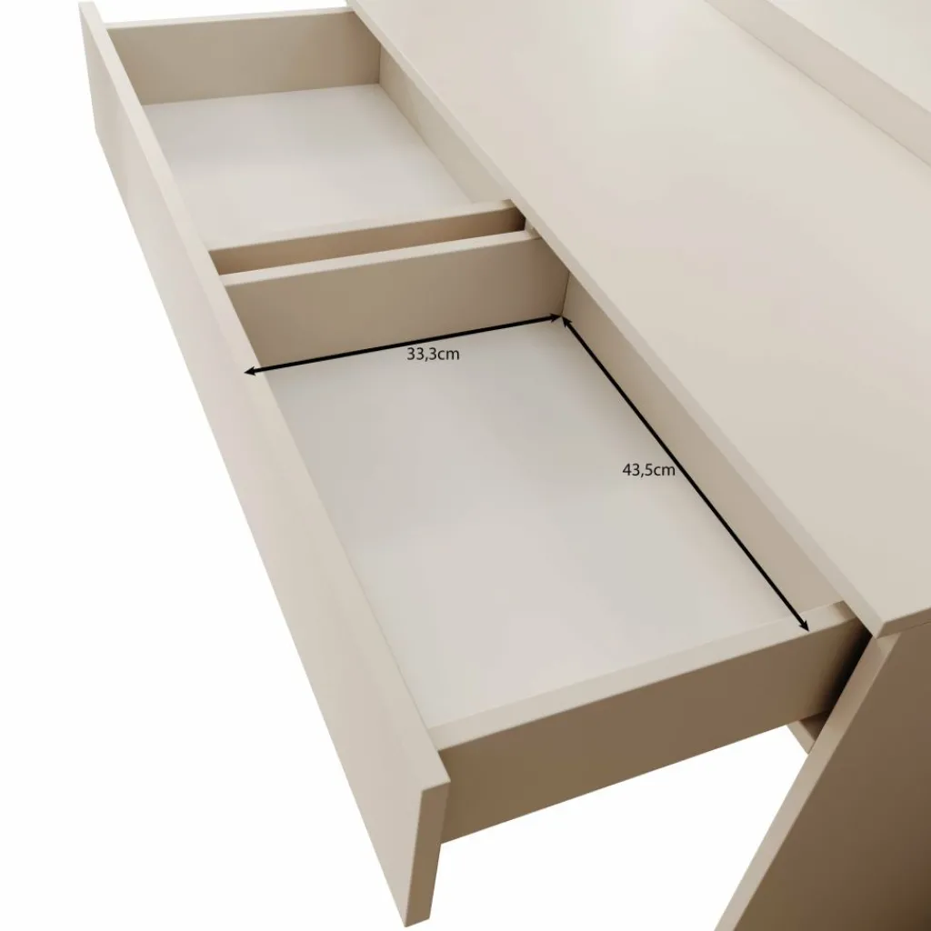 Dankzij de strakke vormgeving en neutrale beige kleur laat Savoy zich eenvoudig combineren met verschillende interieurstijlen. De gesloten zijpanelen en stabiele constructie zorgen voor een stevige basis, terwijl de kaptafel praktisch blijft in gebruik door de overzichtelijke indeling.