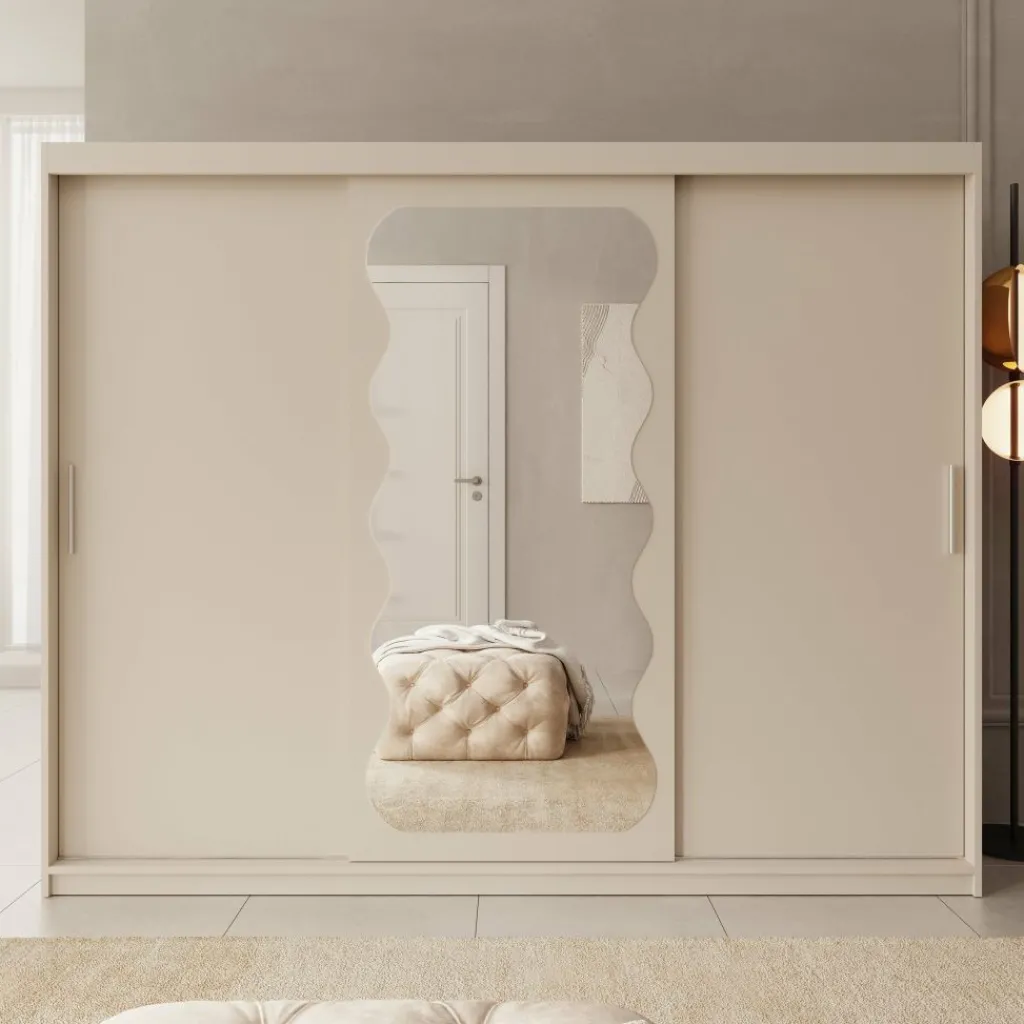 De Sentoji kledingkast is een extra ruime schuifdeurkast uitgevoerd in beige en geschikt voor de slaapkamer of dressing. Met een breedte van 250 cm, een diepte van 62 cm en een hoogte van 200 cm biedt deze kast zeer veel overzichtelijke opbergruimte voor kleding, accessoires en andere items.