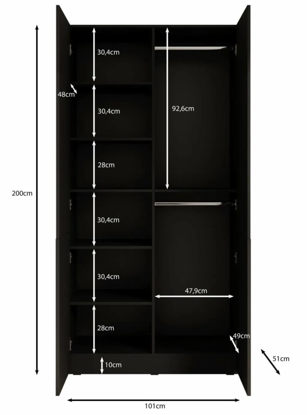 Dankzij het compacte formaat van 101 cm breed past de kast gemakkelijk in kleinere ruimtes.