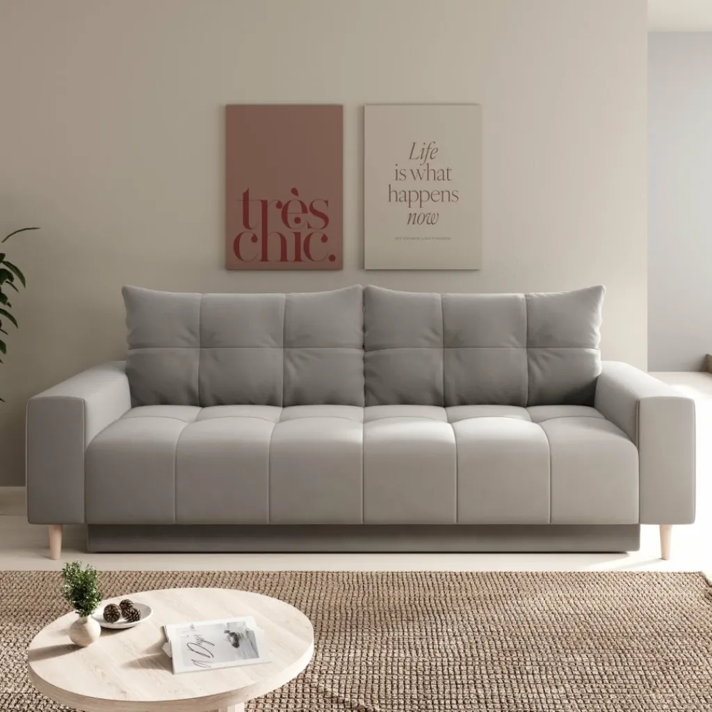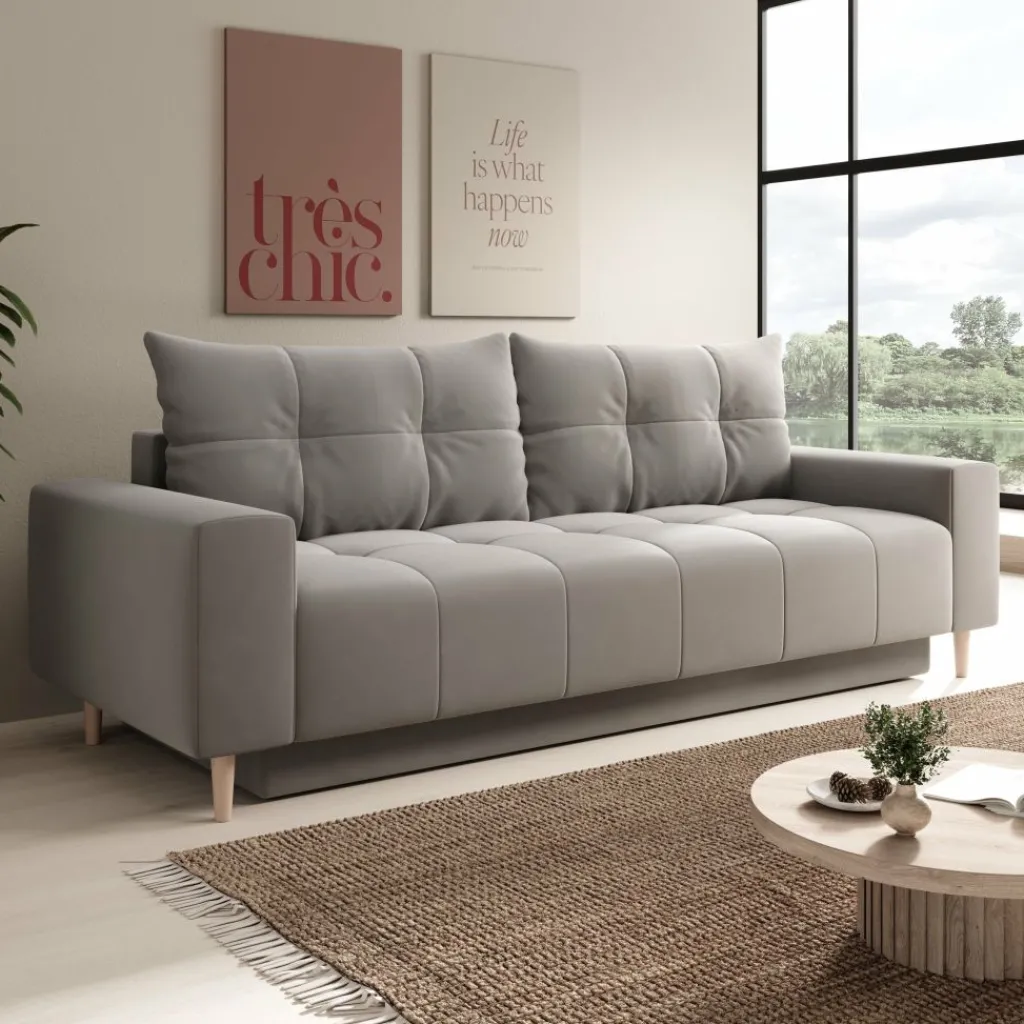 Bankstel Shoren 2 is een Scandinavisch vormgegeven 2-zitter uitgevoerd in grijze kleur. Dit model is bekleed met een zachte velvetstof die aangenaam aanvoelt en zeer duurzaam is. De bank beschikt over losse rugkussens. De Shoren staat op hoge, eikenkleurige pootjes.
