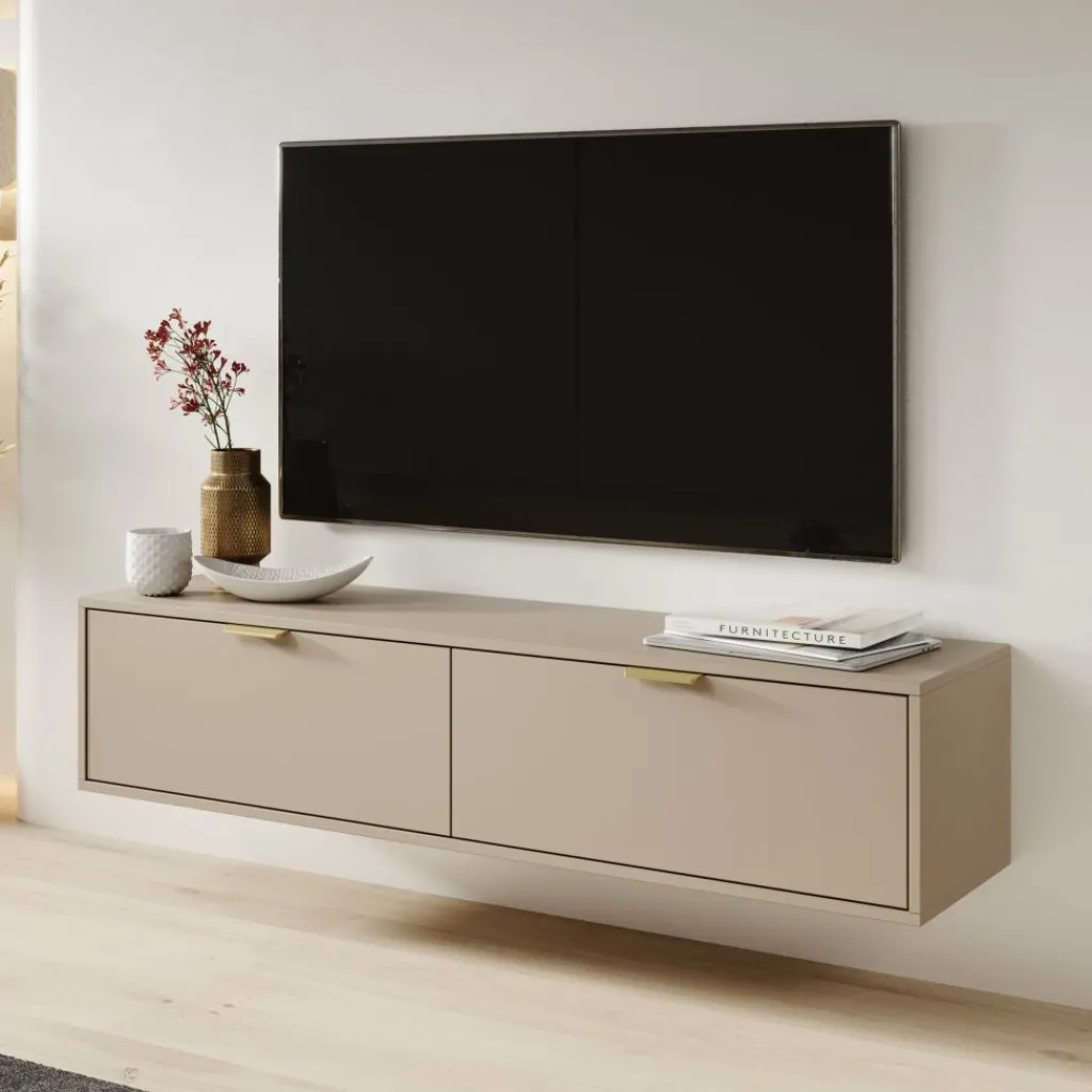 Dankzij de zwevende montage lijkt het meubel te zweven boven de vloer, wat bijdraagt aan een minimalistische en luchtige uitstraling. Dit maakt het niet alleen praktisch, maar ook een echte blikvanger in de woonkamer.