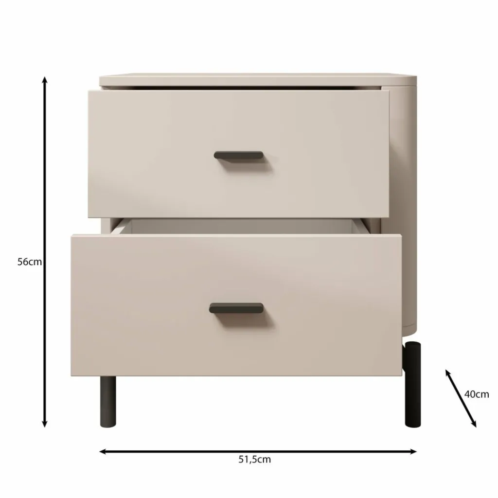 Het Sorello nachtkastje is een compact staand meubel voor naast het bed en is uitgevoerd in beige. Met een breedte van 52 cm, een diepte van 40 cm en een hoogte van 56 cm biedt dit nachtkastje praktische opbergruimte zonder veel vloeroppervlak in te nemen.