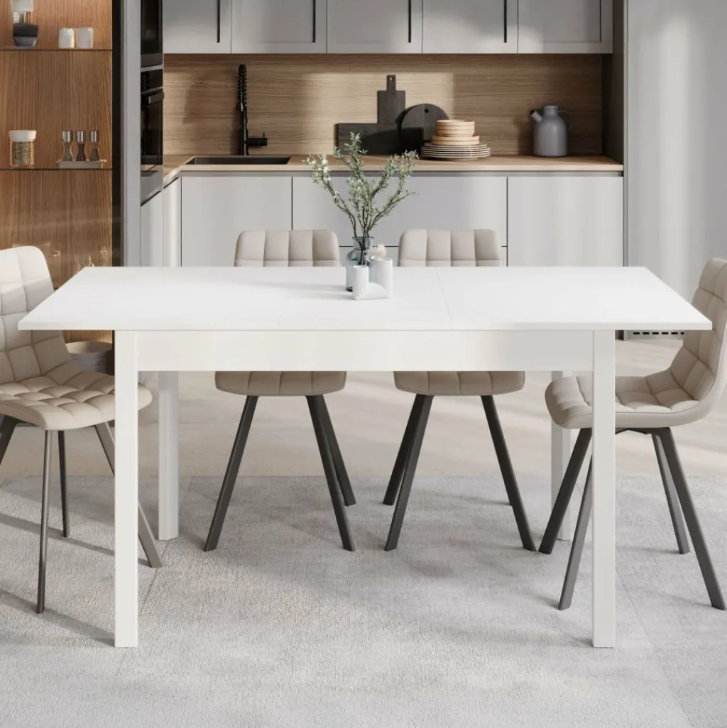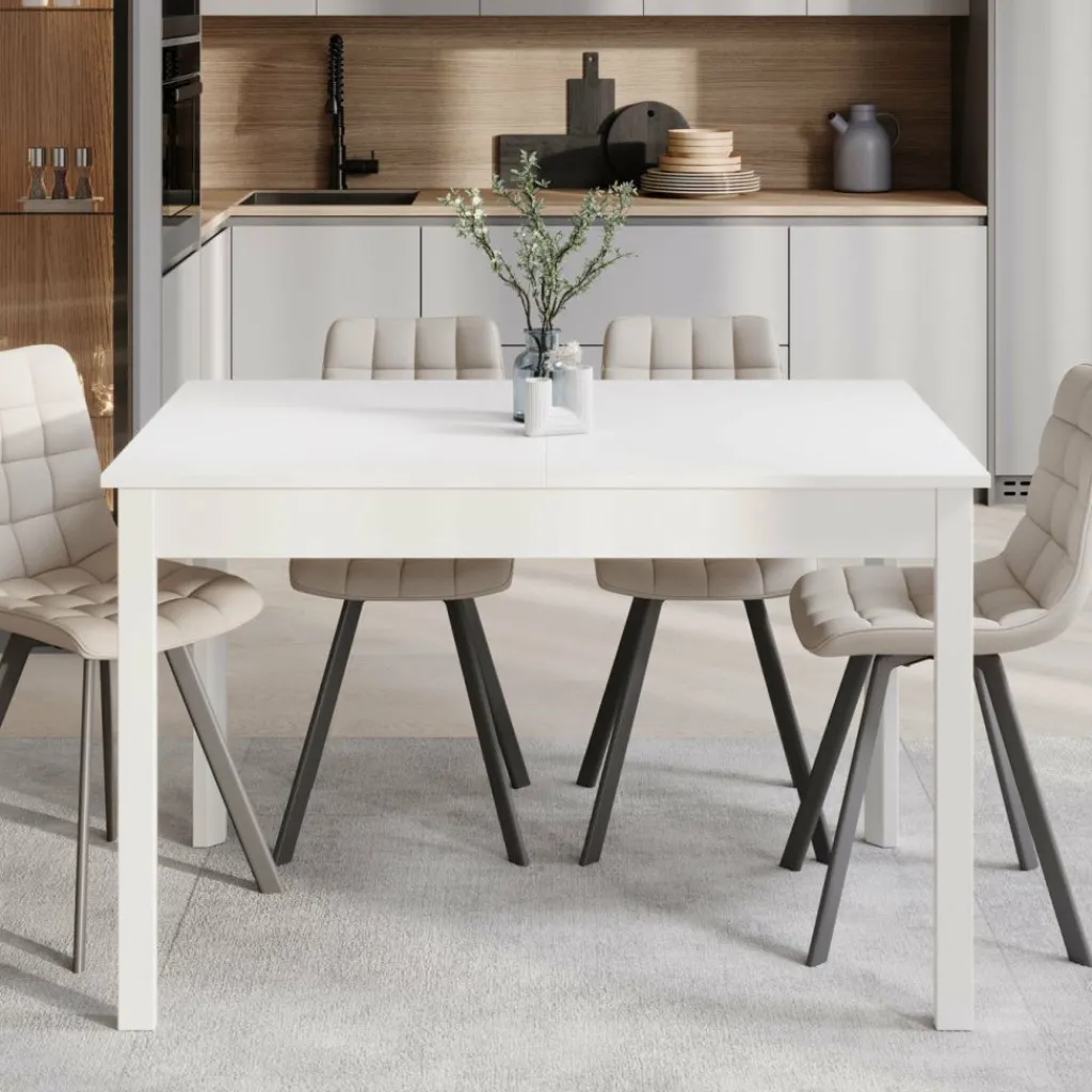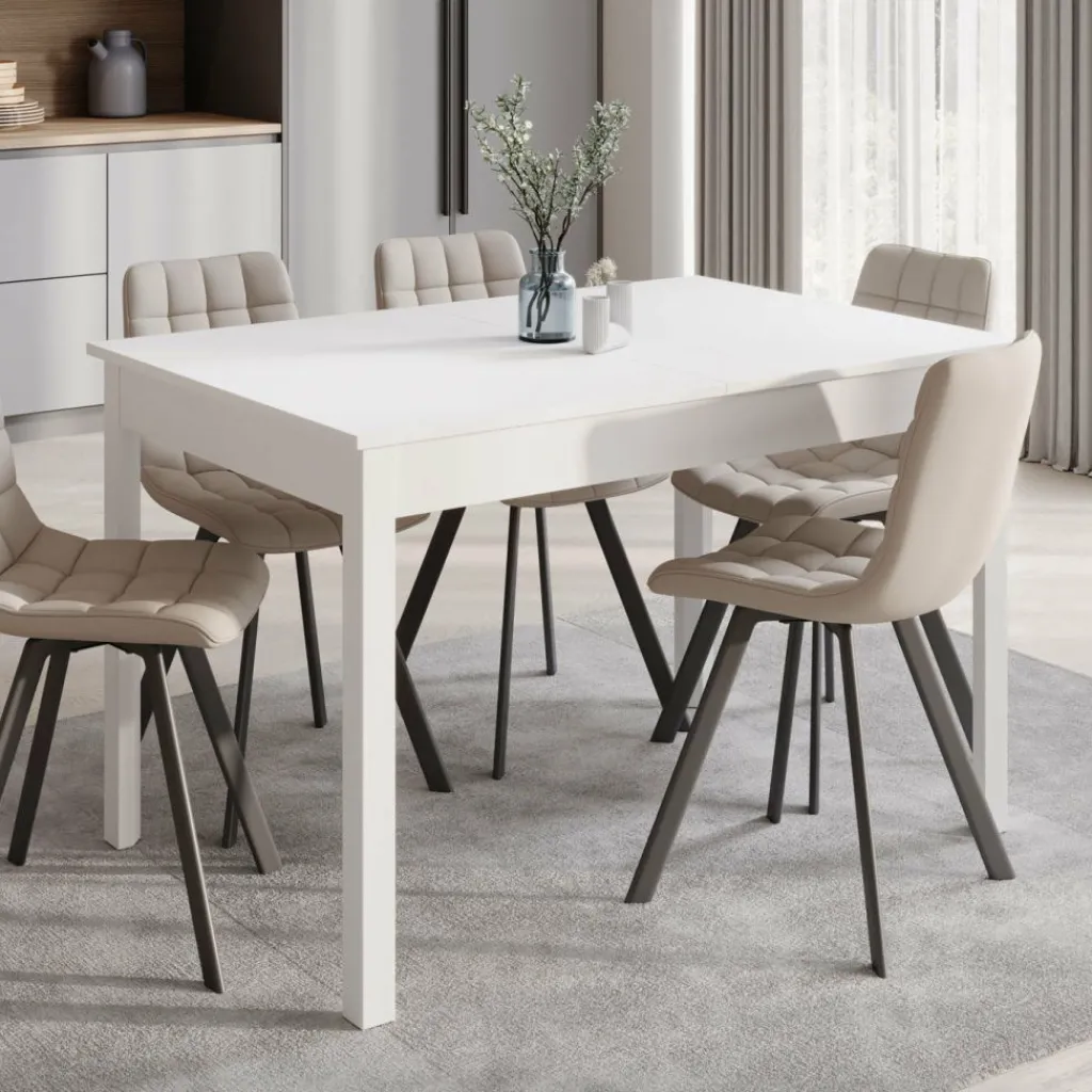 De eetkamertafel Steve is een rechthoekige eettafel die volledig uitgevoerd is in de kleur wit. De Steve is uitschuifbaar van 120 cm naar 160 cm. Hierdoor is de tafel geschikt voor 4 tot 8 personen. Het meubel heeft een moderne uitstraling.