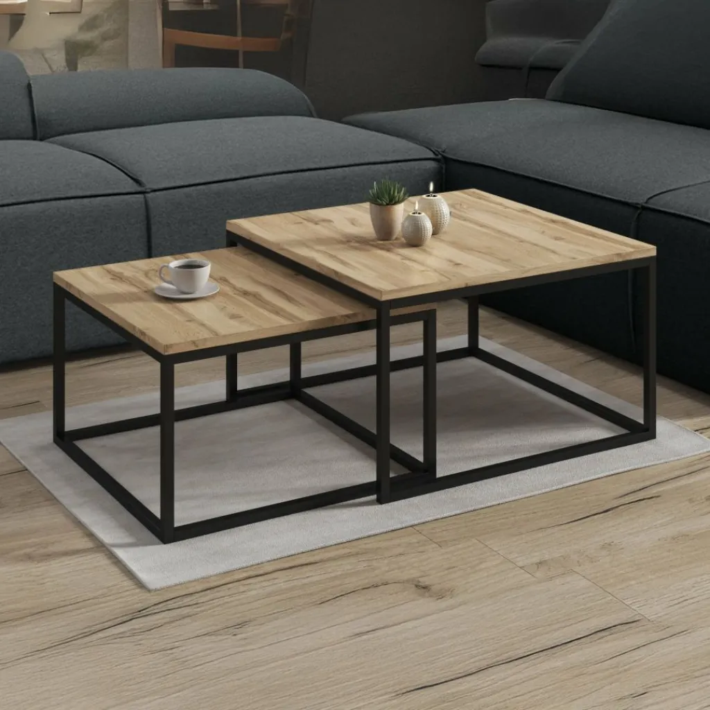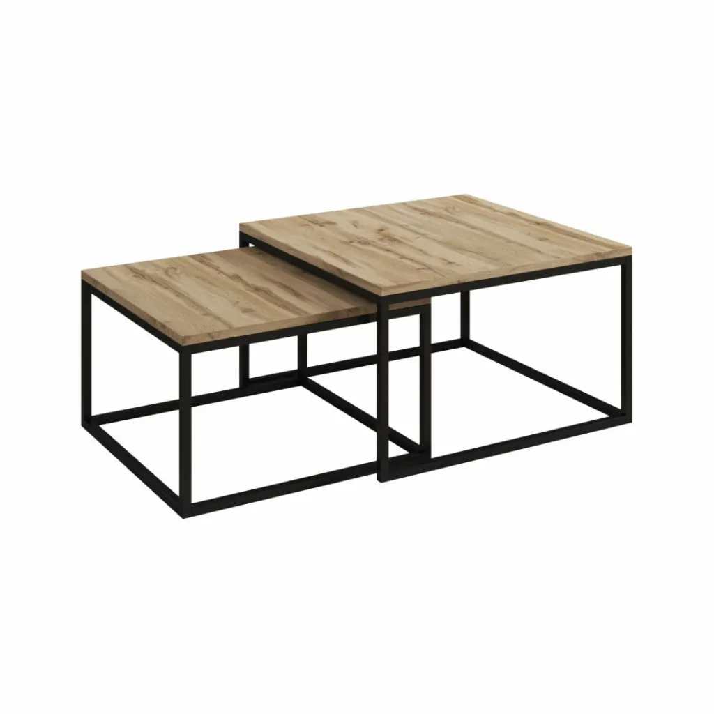 Salontafel Styler is een set van 2 salontafels in matchend design. De set bestaat uit 2 salontafels in verschillende formaten die gemakkelijk in elkaar kunnen worden geschoven wanneer er ruimte gemaakt moet worden. Het bovenblad van de Styler is uitgevoerd in eiken kleur en de tafels zijn afgewerkt met een stevig metalen frame, wat zorgt voor stabiliteit en een stoere uitstraling.