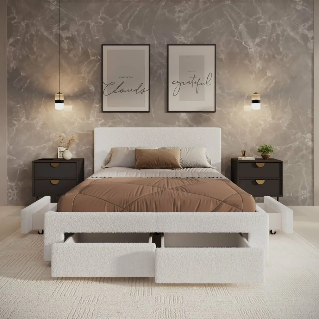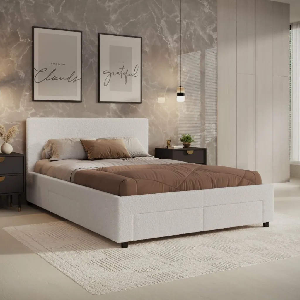 Dankzij de 4 geïntegreerde lades beschik je over volop opbergruimte voor beddengoed, kussens of kleding. Zo blijft je slaapkamer altijd netjes en geordend. Het compacte formaat maakt dit model ideaal voor kleinere slaapkamers of logeerkamers, zonder in te leveren op comfort en functionaliteit.