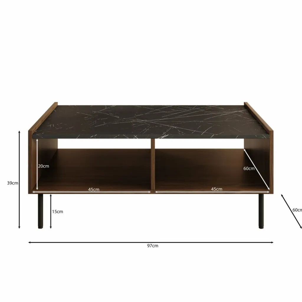 Onder het tafelblad bevinden zich open vakken die praktische opbergruimte bieden voor tijdschriften, afstandsbedieningen of andere items die je graag binnen handbereik houdt. Met een afmeting van 97x60x39 cm is de Tahiti geschikt voor diverse zithoeken en eenvoudig te plaatsen in de woonkamer.