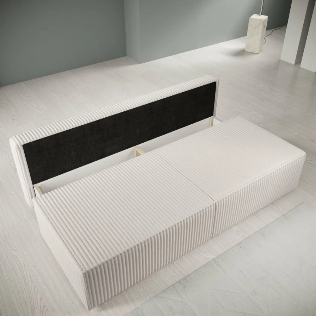 De bank is voorzien van een uitklapfunctie waarmee het zitgedeelte eenvoudig kan worden omgevormd tot een ligoppervlak. In uitgeklapte stand ontstaat een vlak slaapoppervlak, geschikt voor incidenteel gebruik. Onder het zitgedeelte bevindt zich een geïntegreerde opbergruimte, toegankelijk na het openen van de zitting, handig voor het opbergen van bijvoorbeeld beddengoed of kussens.