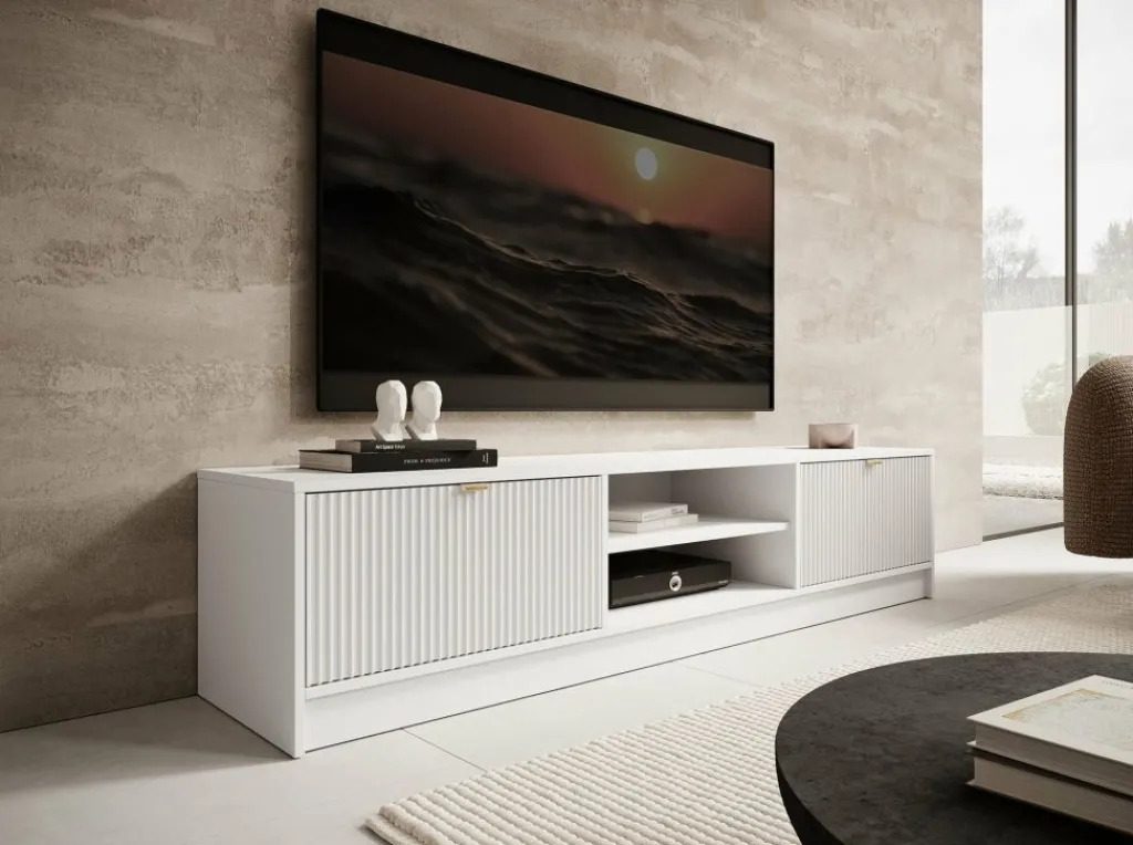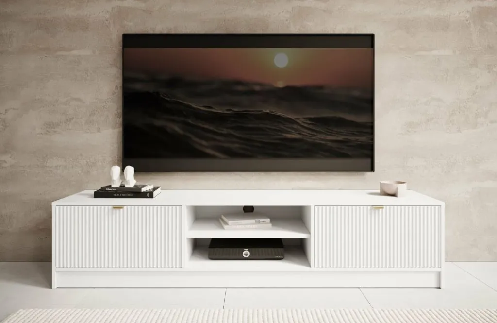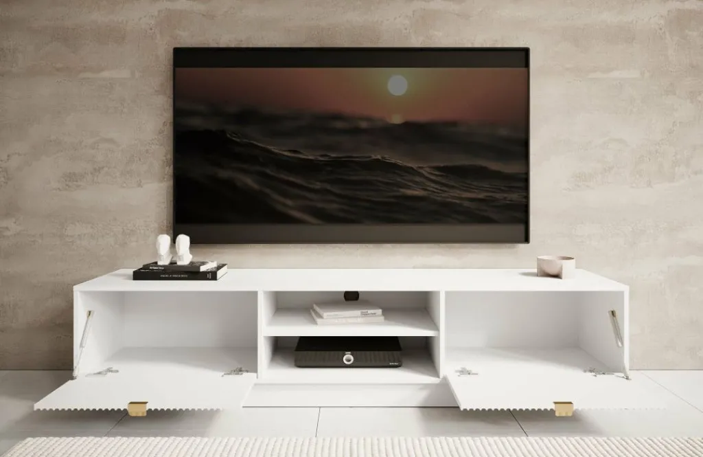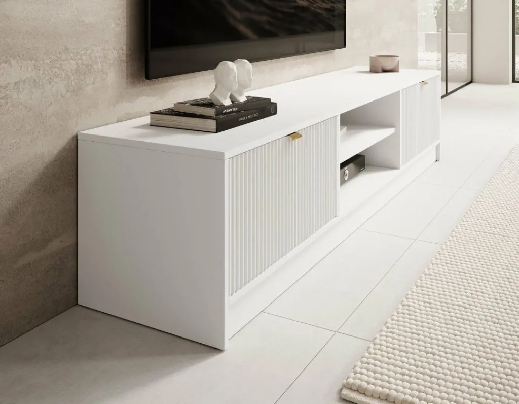 TV-Meubel Tavares is een modern tv-meubel in hotel-chique stijl. Het meubel is gemaakt van een stevige spaanplaat constructie in witte kleur.