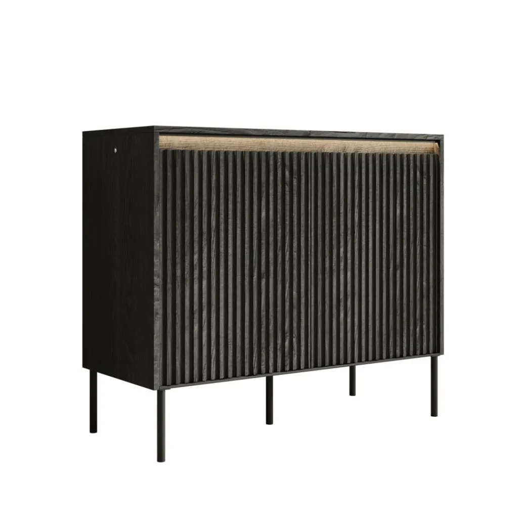 Bovendien is het dressoir uitgerust met geïntegreerde ledverlichting, die zorgt voor een sfeervol accent en het bovenblad extra geschikt maakt voor decoratie.