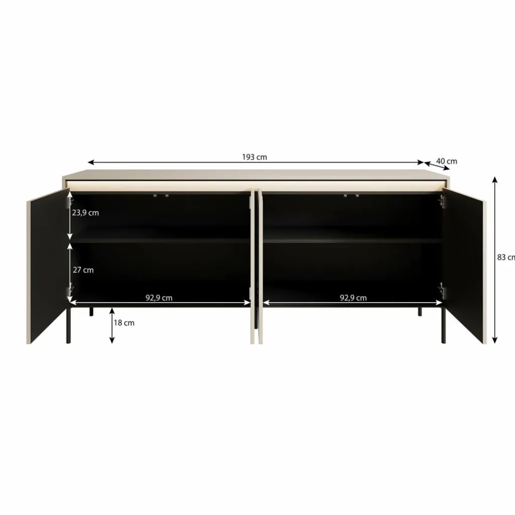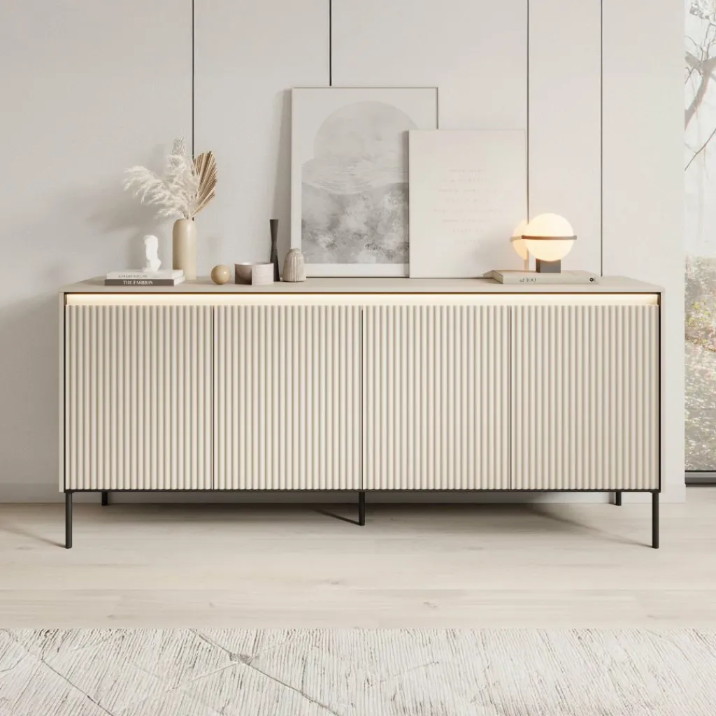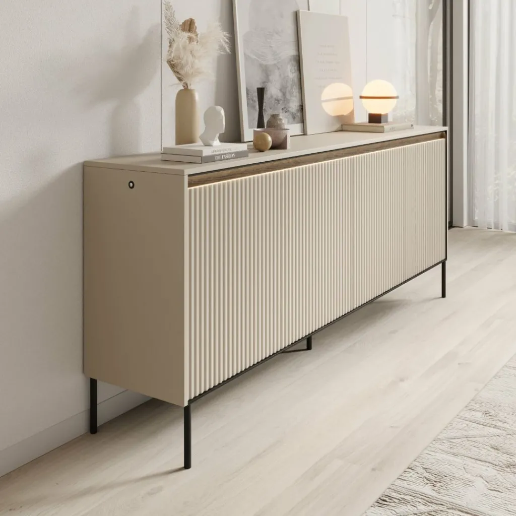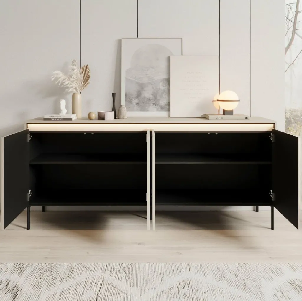 Daarnaast is het dressoir voorzien van geïntegreerde ledverlichting. Dit geeft een subtiel en sfeervol lichtaccent en maakt het bovenblad extra geschikt voor decoratie.