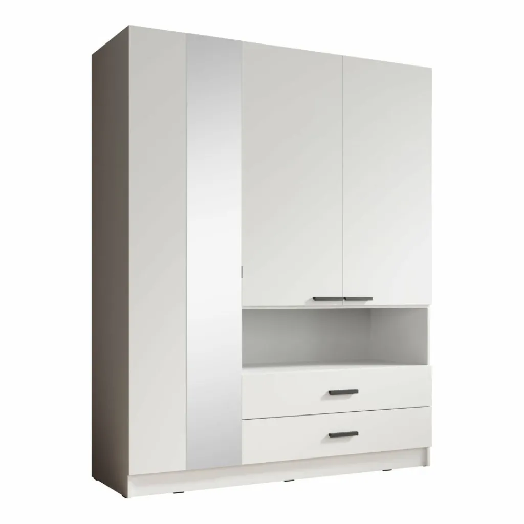 De kledingkast Tobin combineert een strak design met praktische opbergruimte. De kast is uitgevoerd in een frisse witte kleur en voorzien van drie deuren, waarvan één met spiegel. Hierdoor oogt je slaapkamer niet alleen ruimtelijker, maar heb je ook altijd een handige spiegel bij de hand.