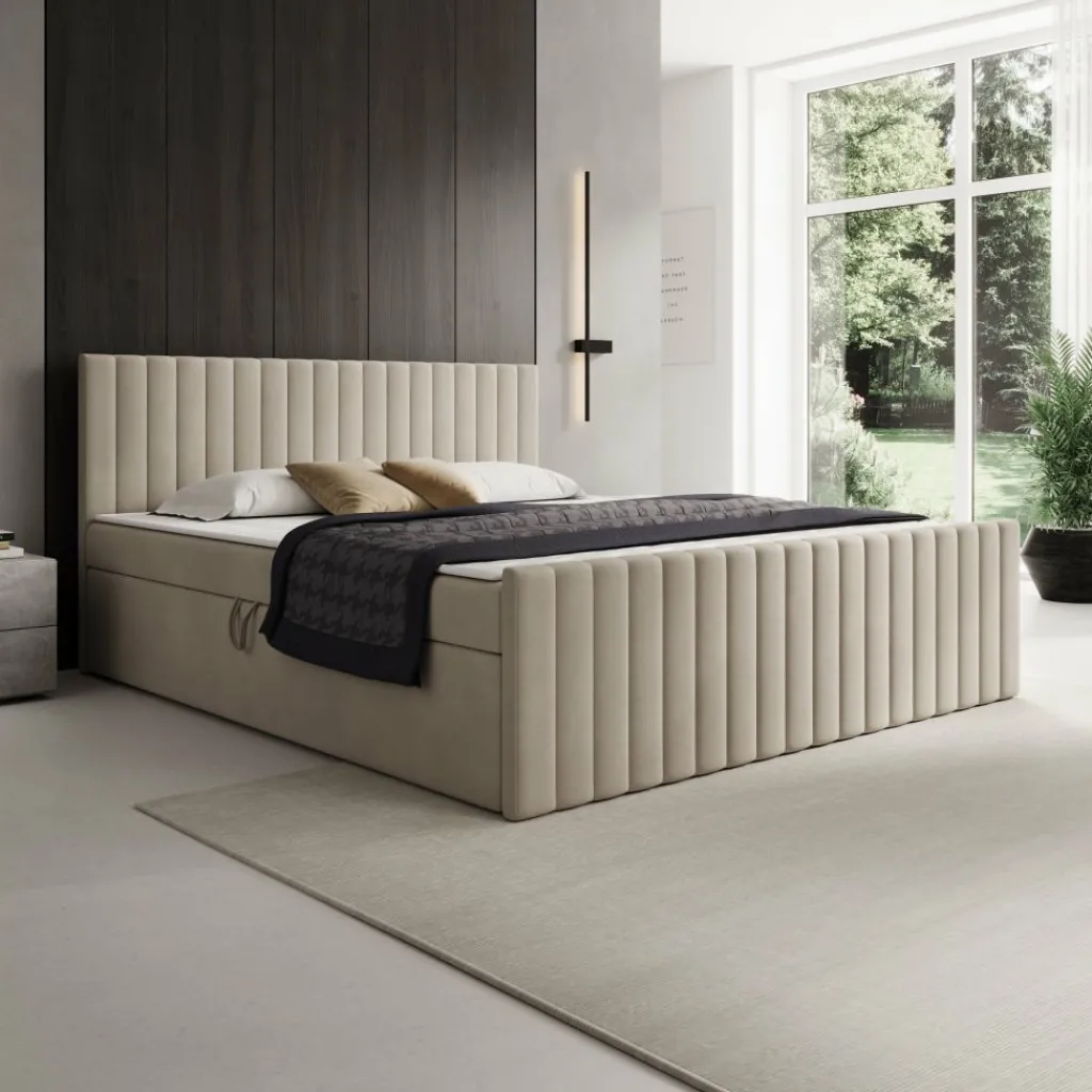 De Tori boxspring is verkrijgbaar in meerdere maten en kleuren, zodat je eenvoudig een variant kiest die past bij jouw slaapkamer en gewenste comfortniveau.