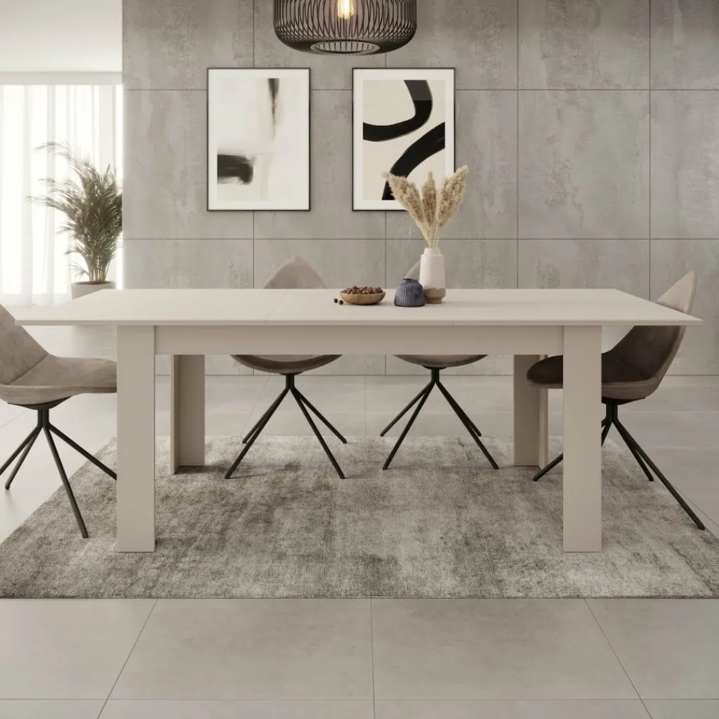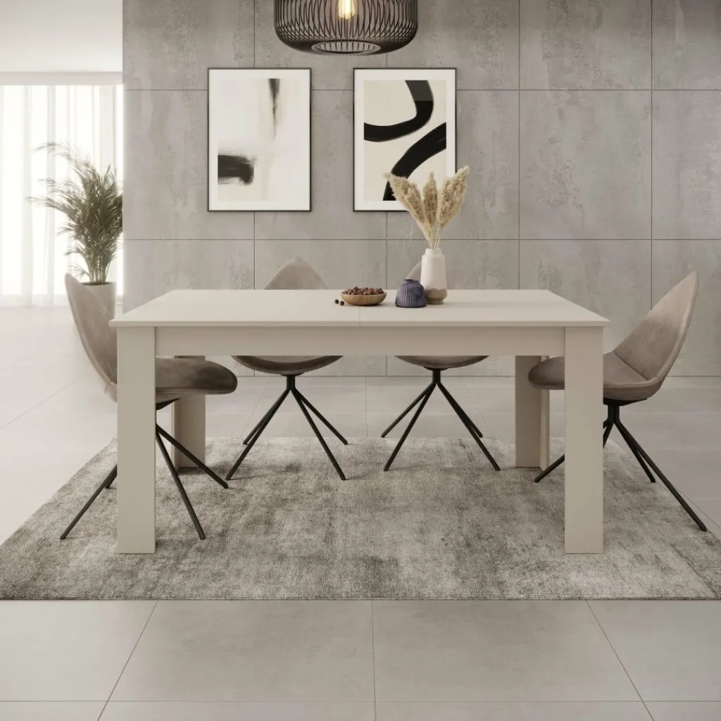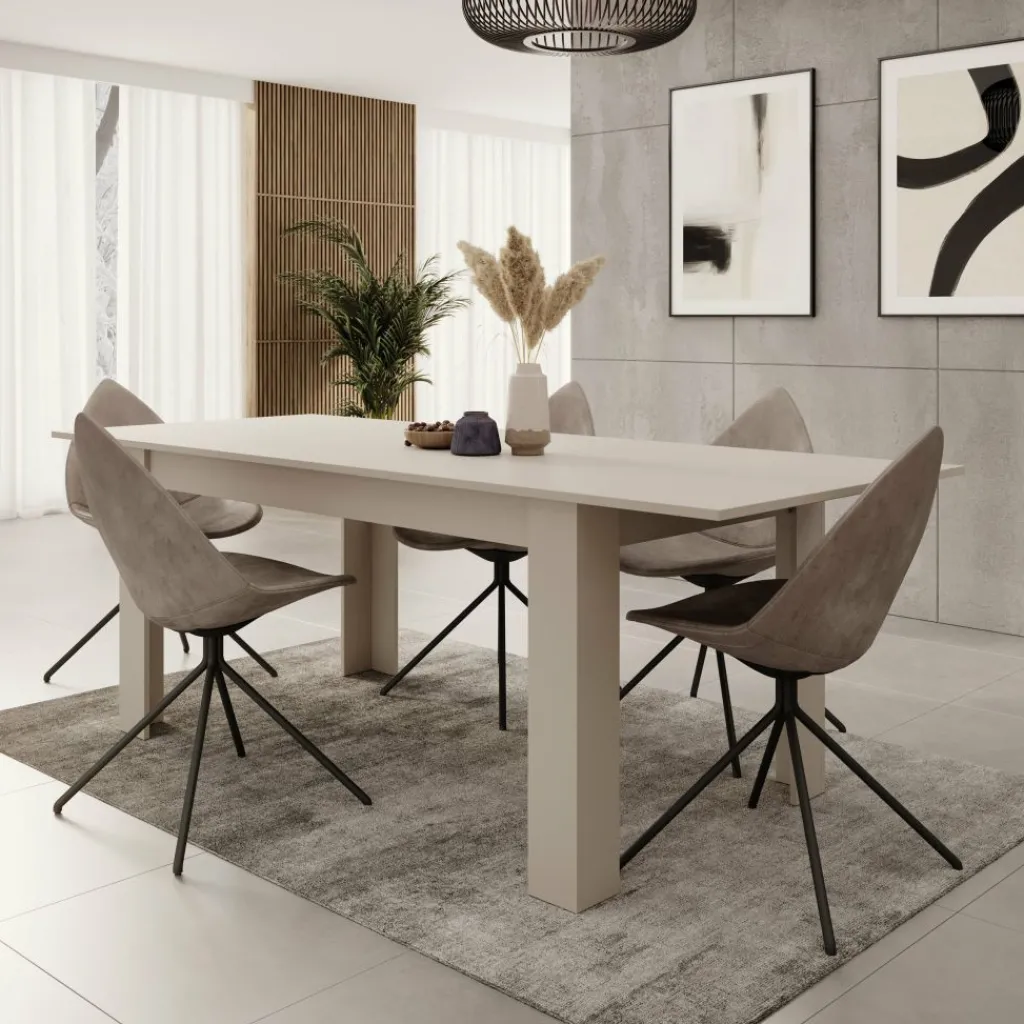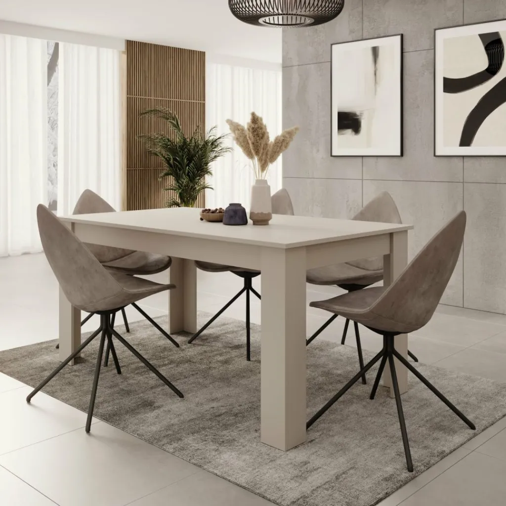 Eetkamertafel Uverta is een rechthoekige tafel uitgevoerd in een beige kleur. De eettafel is uitschuifbaar van 160 cm naar 220 cm. Hierdoor is de tafel geschikt voor 6 tot 8 personen. De tafel heeft een modern design en staat op 4 poten.