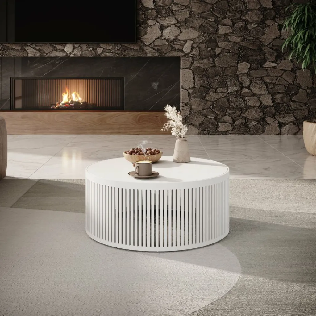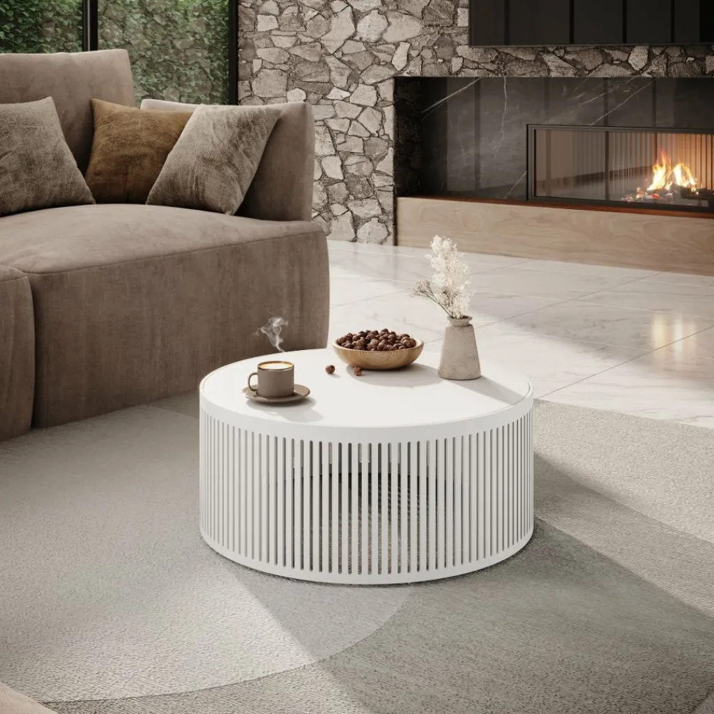 Salontafel Vanya is een ronde salontafel met een moderne uitstraling. De tafel heeft een diameter van 75 cm en staat op een metalen frame. Het tafelblad is gemaakt van een stevige spaanplaat constructie. Het meubel is volledig uitgevoerd in de kleur wit.