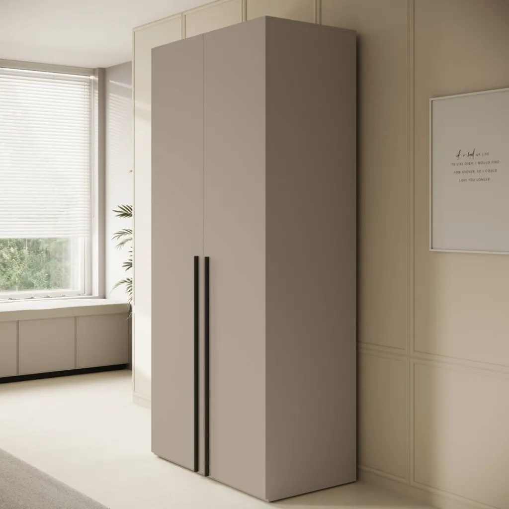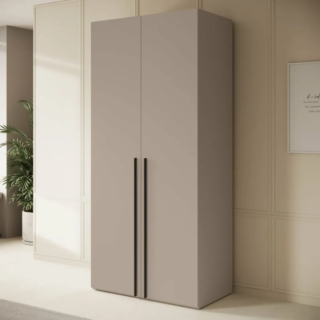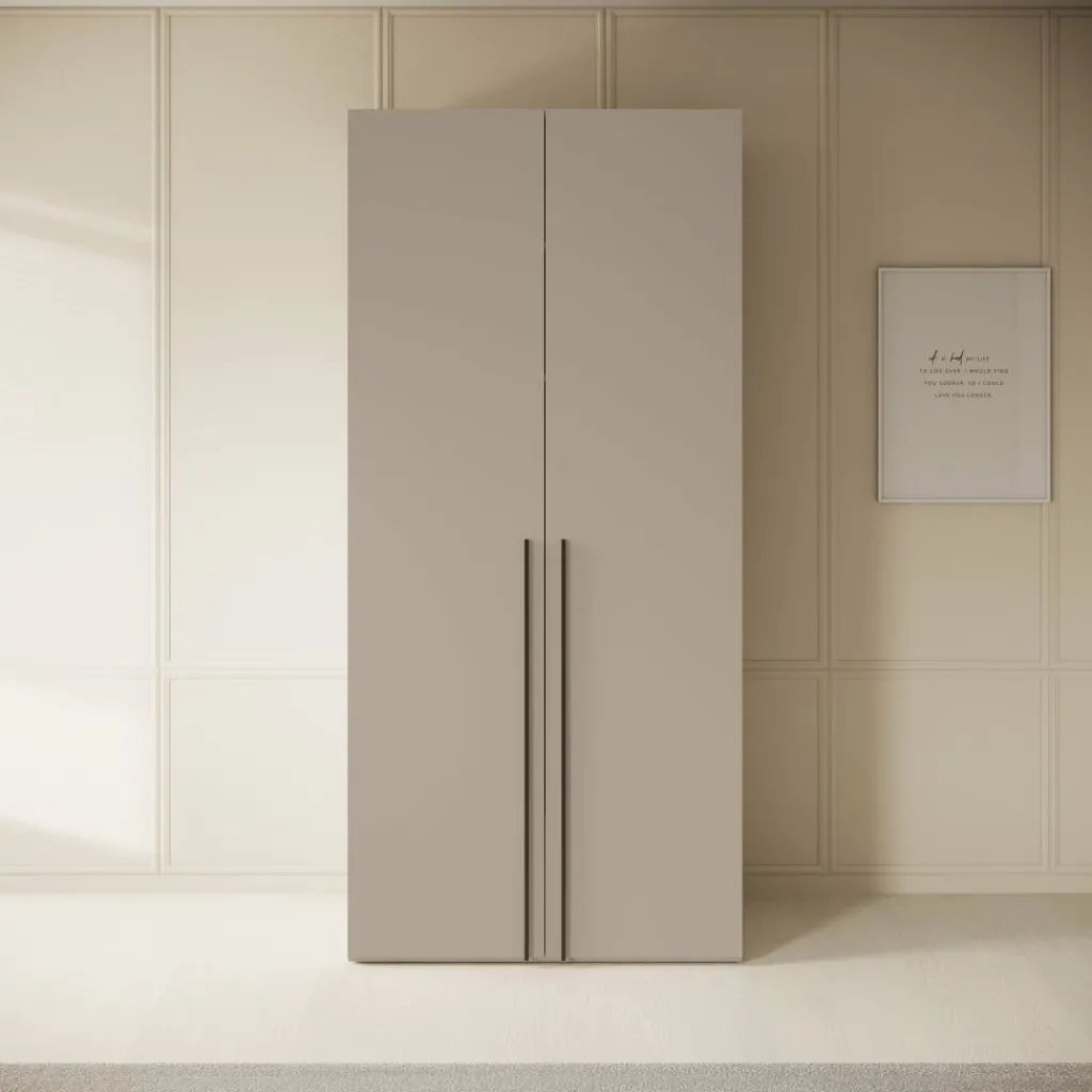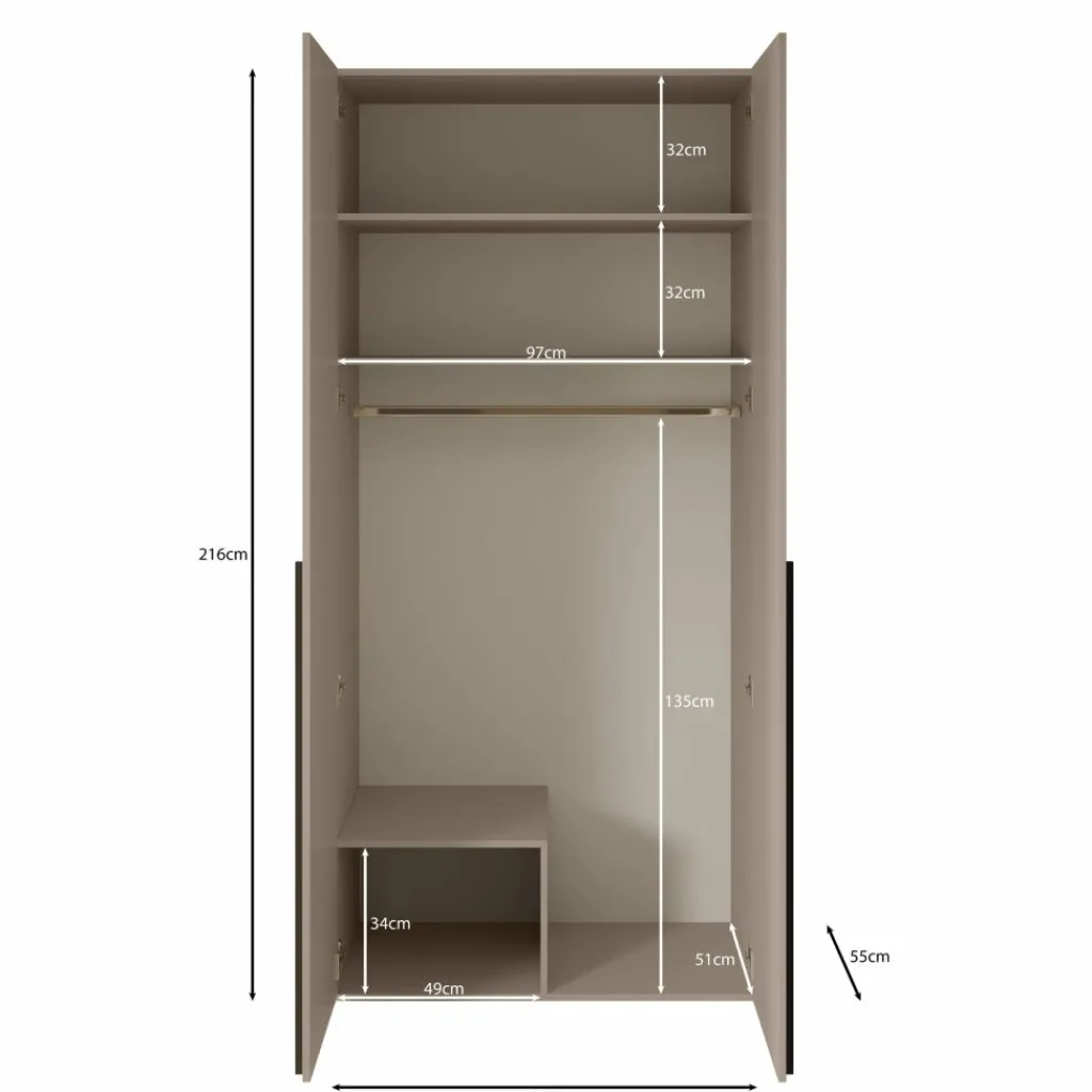 De beige afwerking en rechte lijnen maken de kast eenvoudig te combineren in verschillende interieurstijlen. Met een hoogte van 216 cm benut je de ruimte optimaal, terwijl de compacte breedte van 100 cm het geschikt maakt voor zowel slaapkamer, hal als inloopkast.
