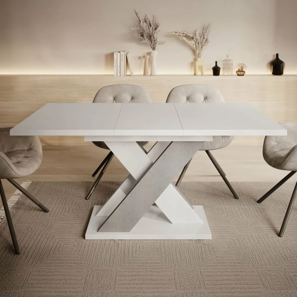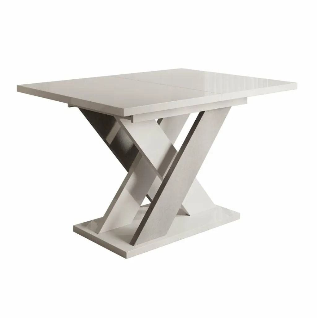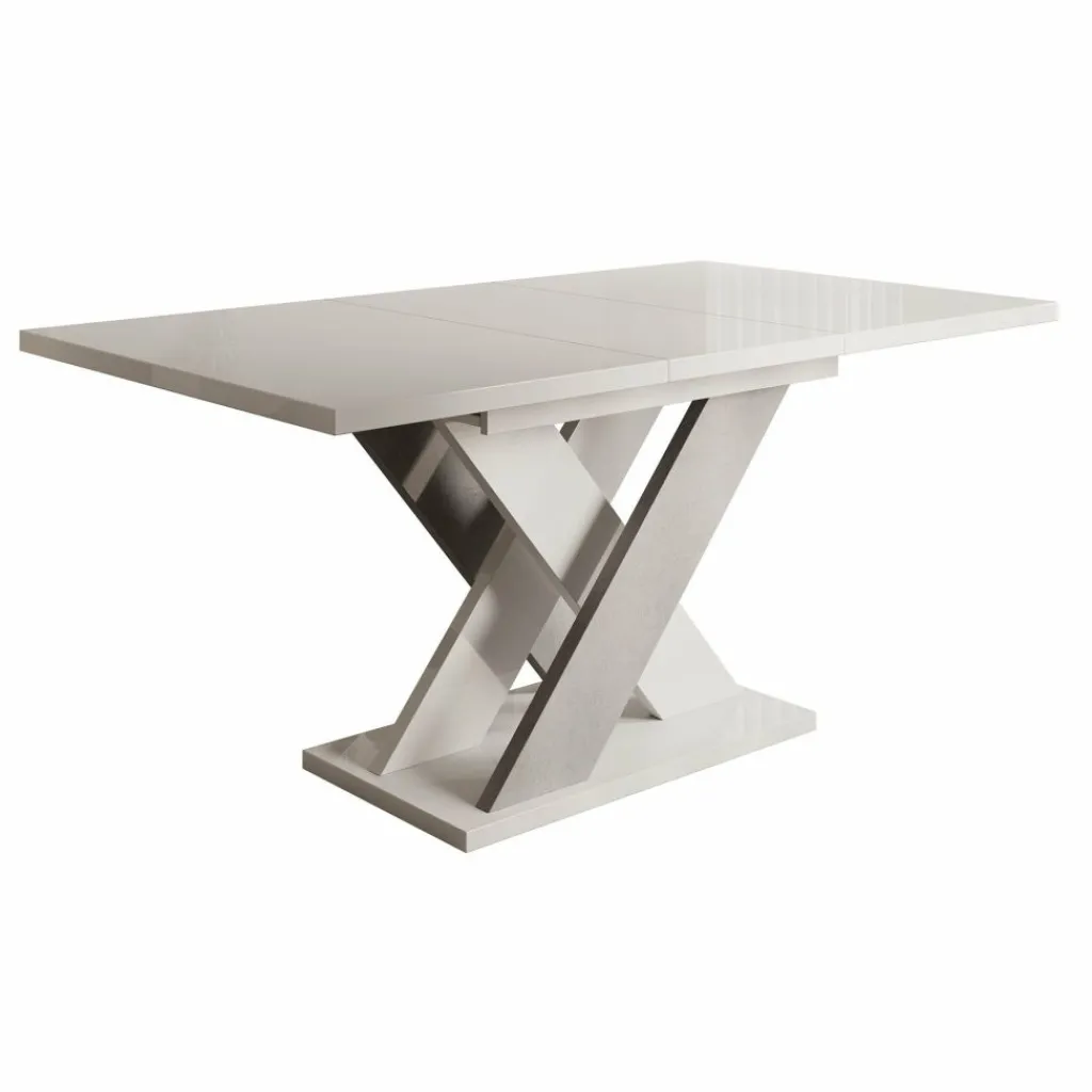 Het uitschuiven van de tafel werkt als volgt: in het frame zit een rails waaraan de twee uiteinden van de tafel zijn bevestigd. Je trekt beide uiteinden een beetje naar buiten en haalt het middenstuk ertussenuit. Dit deel kan je opbergen in de ruimte onder het tafelblad. Vervolgens duw je de twee uiteinden weer naar het midden en bevestigt deze aan elkaar d.m.v. de haakjes onder het tafelblad.