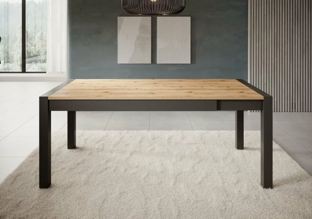 Eetkamertafel Acapulco is een praktische eettafel uitgevoerd in een glas in zwarte kleur met eikenkleurig blad. Het tafelblad bestaat uit drie delen zodat de tafel in meerdere standen te gebruiken is. Bij gebruik van alle drie de delen van het tafelblad heeft de Acapulco een lengte van 240 cm. Als de kleinste stand nodig is heeft de tafel een lengte van 160 cm.