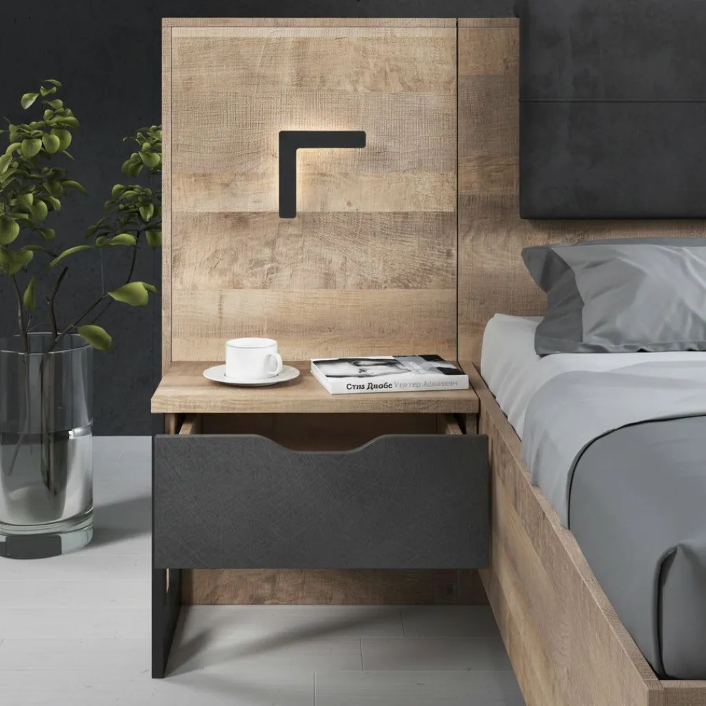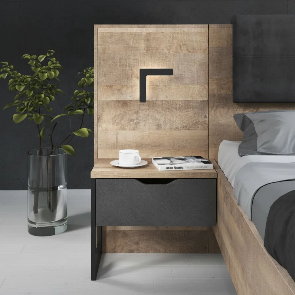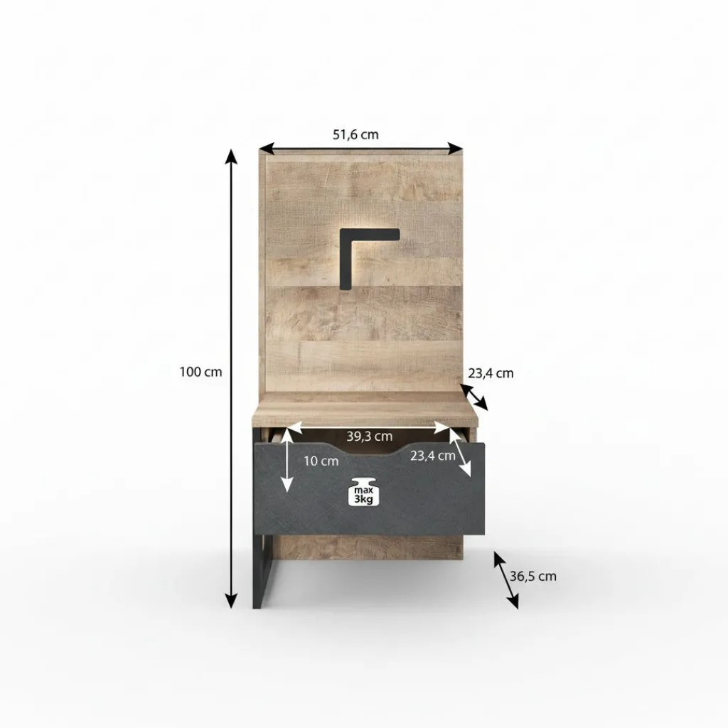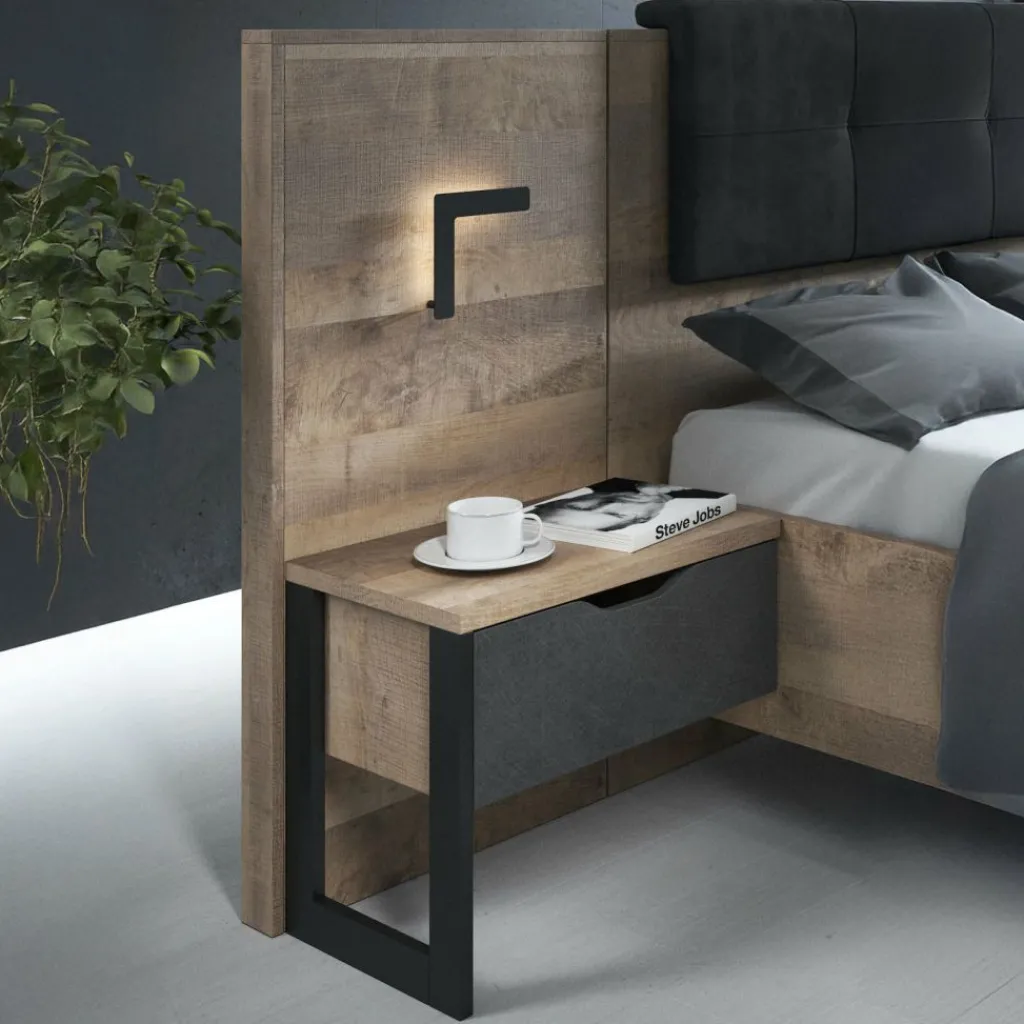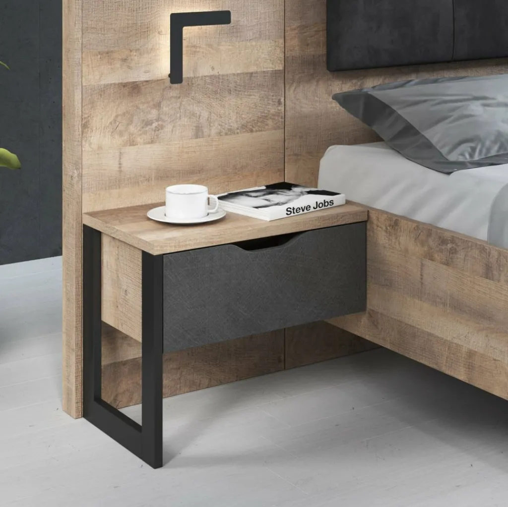 Dankzij de combinatie van houtlook en donkere accenten krijgen de nachtkastjes een moderne en robuuste uitstraling die goed past bij diverse slaapkamerstijlen. De stevige constructie zorgt voor stabiliteit en dagelijks gebruiksgemak.