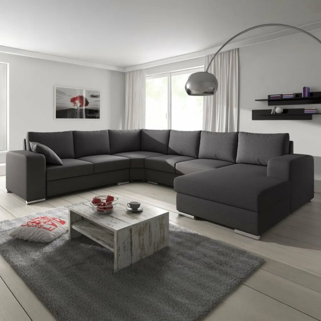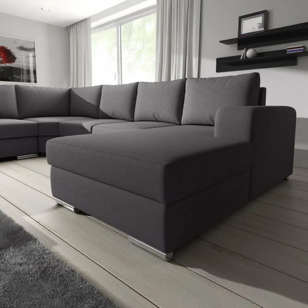 Hoekbank Adel is een strakke, ruime hoekbank met een tijdloos design. Deze praktische bank is voorzien van voldoende zitplaatsen voor het hele gezin. De bekleding is van een sterke stof in een donkergrijze kleur. De poten van deze hoekbank zijn afgewerkt in verchroomd kunststof.
